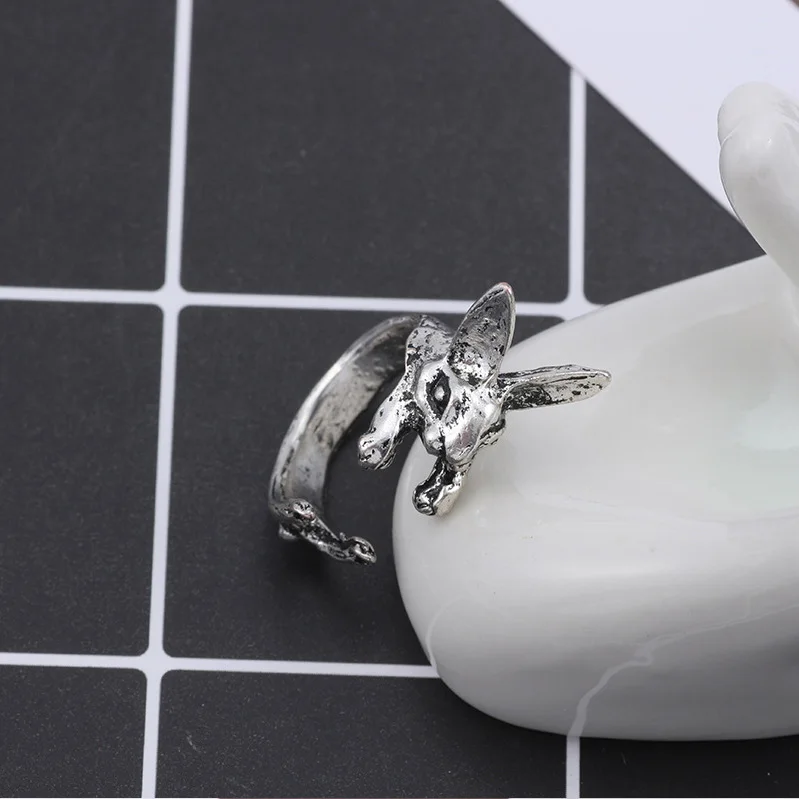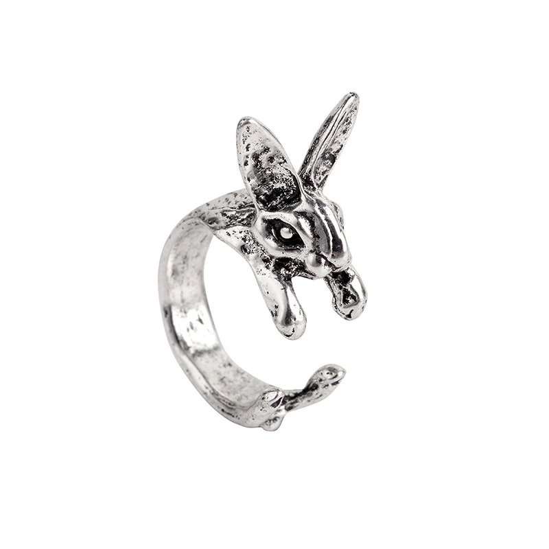 Кольцо женское регулируемое в виде кролика, серебристого цвета, A971