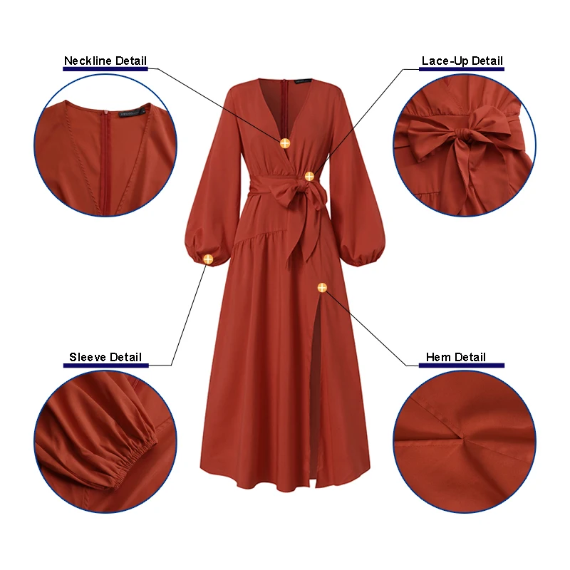 Посылка входит: 1 платьеМатериал: 95% полиэстер + 5% спандексЦвета: черный, оранжевый, зеленыйРазмер: S,M,L,XL,2XL ,,,Длина рукава: полный рукавВырез горловины: v-образный вырезРисунок: однотонныйДлина: до щиколоткиЦепочка с пряжкой: с молнией сзадиТолщина: тонкаяУкрашение: шнуровкаОсобенности: высокий разрез, эластичный манжетСтиль: Досуг, богемный, ретро, Европа, мода, сексуальный, литератураСезон: весна, лето, осень, зимаПовод: семья вечерние, свадьба, праздник, Повседневный, путешествия
