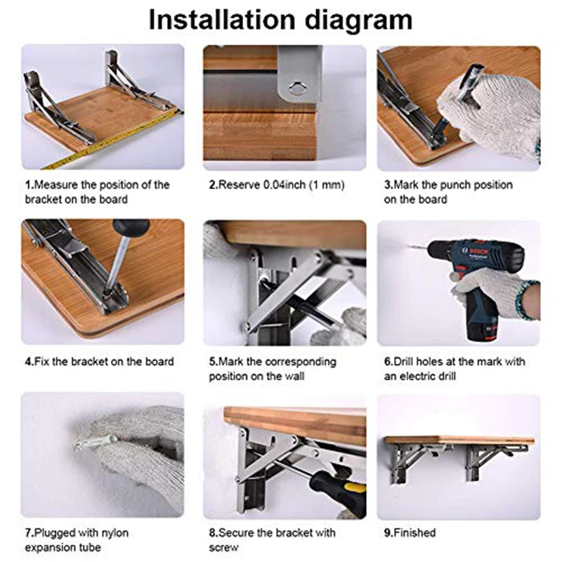 2 шт., складные кронштейны для полки, из нержавеющей стали