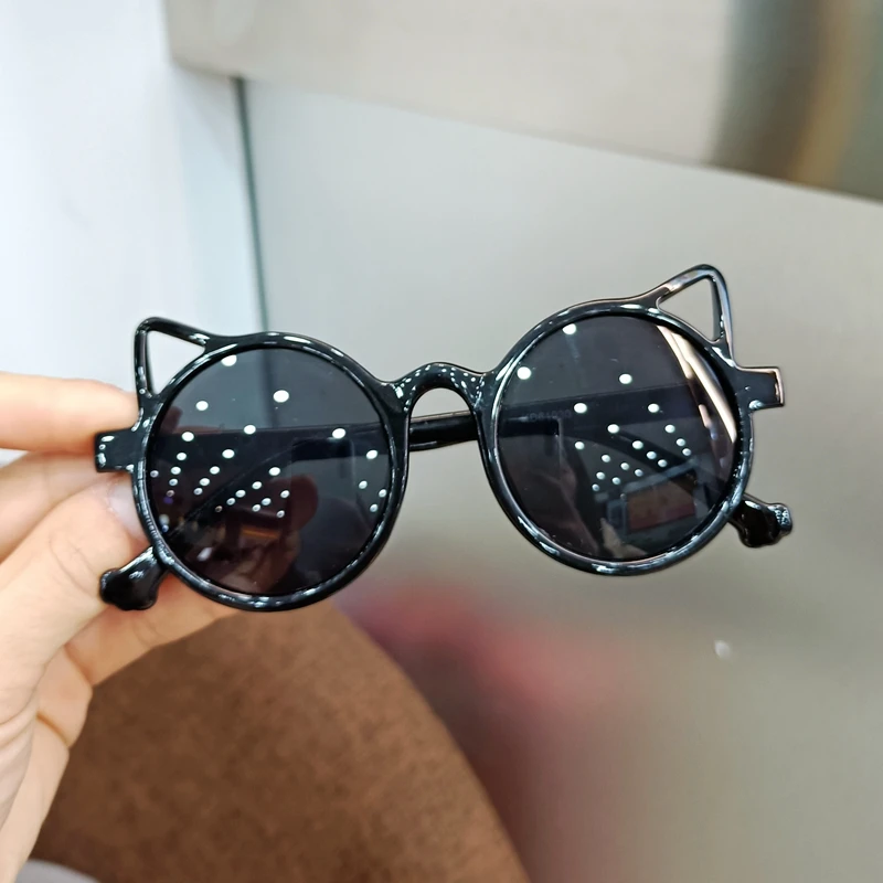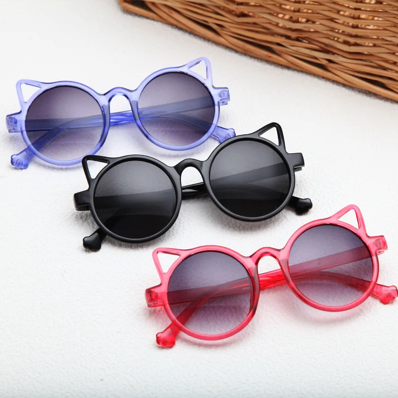 Детские круглые солнцезащитные очки для девочек и мальчиков, блестящие солнцезащитные очки с кошачьими ушками, детские очки, модные градиентные очки UV400