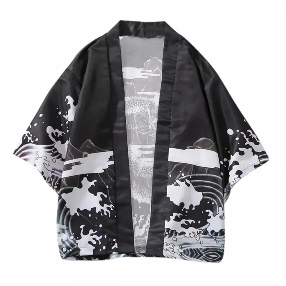 Кимоно мужское с рукавами волны дракона 34, юката, кардиган, рубашка, винтажная одежда, рубашка мужская