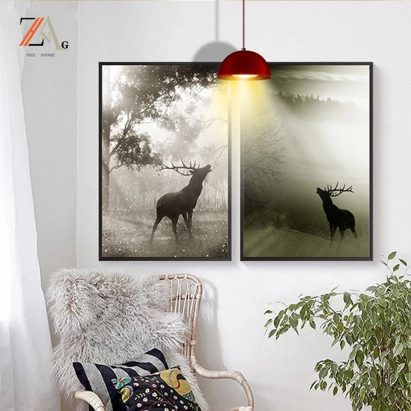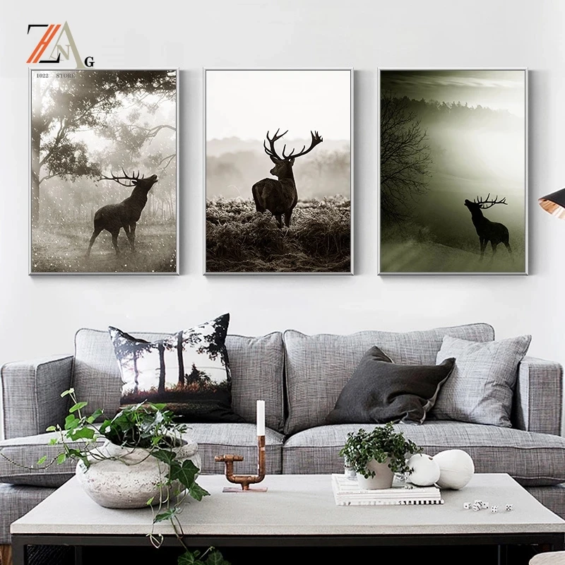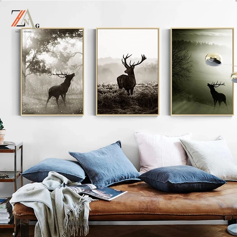 Настенная картина в скандинавском стиле с изображением животных, оленя, холст, пейзаж, художественный плакат с изображением животных, Настенная картина для гостиной, украшение для дома