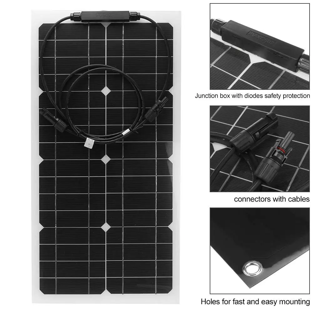 150W Панели солнечные комплект 12V24V переносной Гибкая панель солнечной батареи из монокристаллического кремния клетки Батарея Зарядное устройство для кемпинга автомобиля яхта RV мобильный телефон