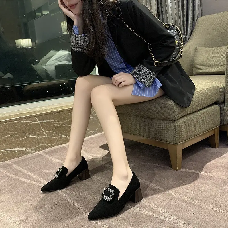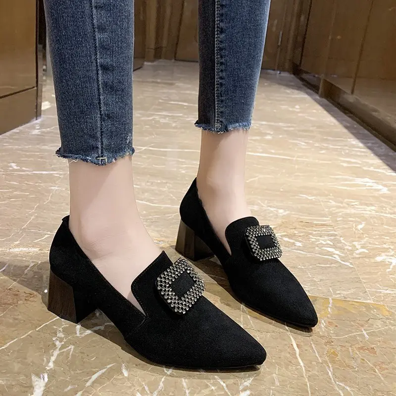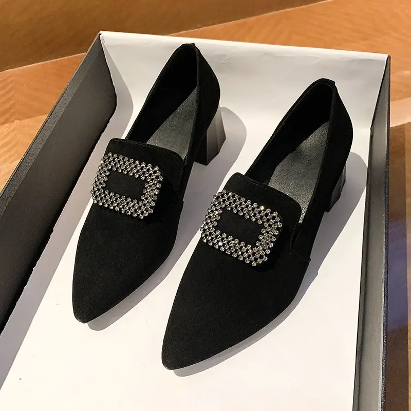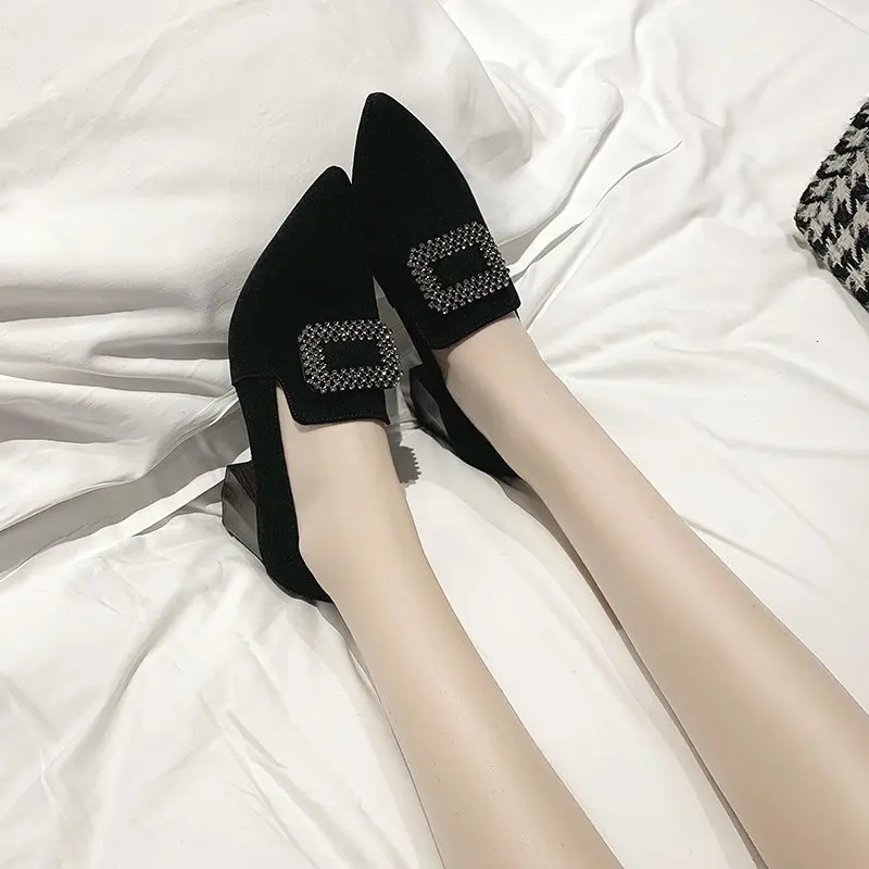 Женские туфли-лодочки с острым носком, на квадратном каблуке