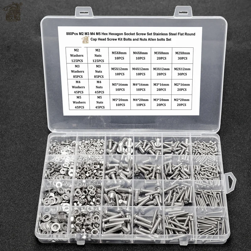 Набор винтов с шестигранным шестигранником, M2, M3, M4, M5, 860 шт.