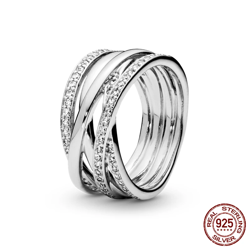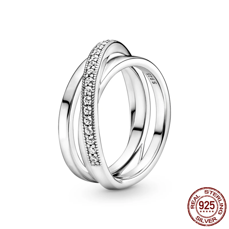 Женское кольцо с ПАВЕ, из серебра 925 пробы, с тремя кольцами