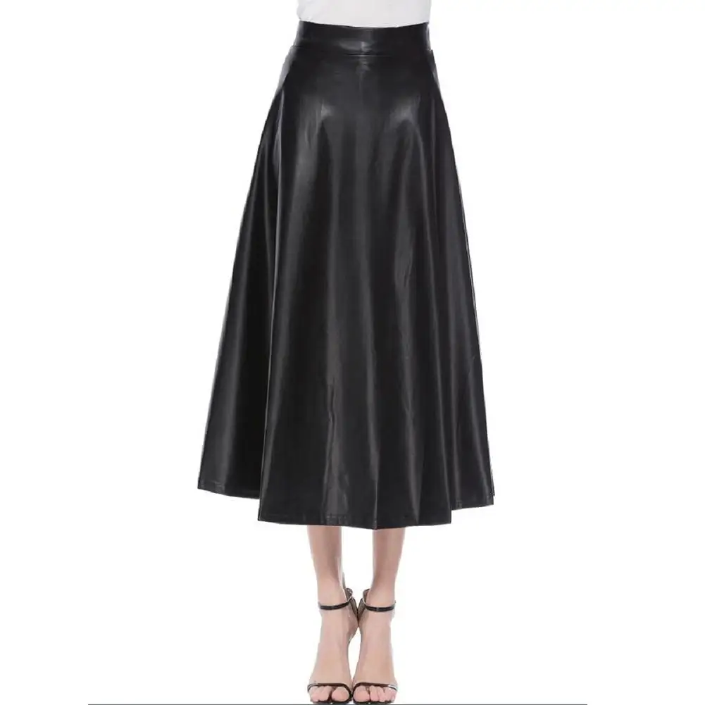 Модная женская однотонная длинная юбка из искусственной кожи с высокой талией на молнии