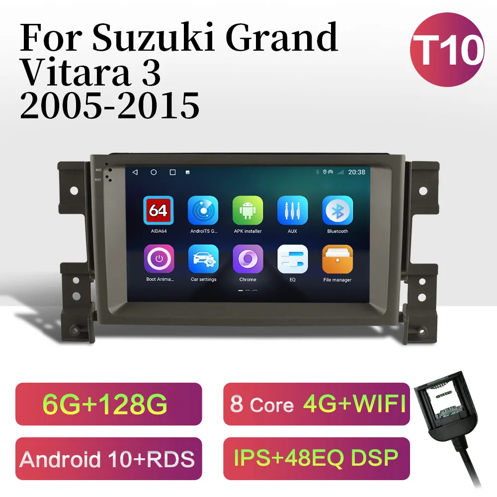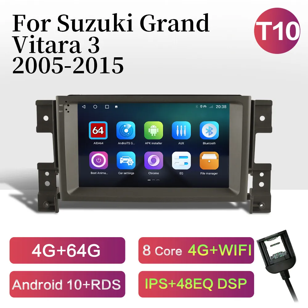 Автомагнитола 2 DIN, 4G, Android 10, мультимедийный видеоплеер для SUZUKI GRAND VITARA 2005, 2006, 2007, 2008-2015, GPS-навигация