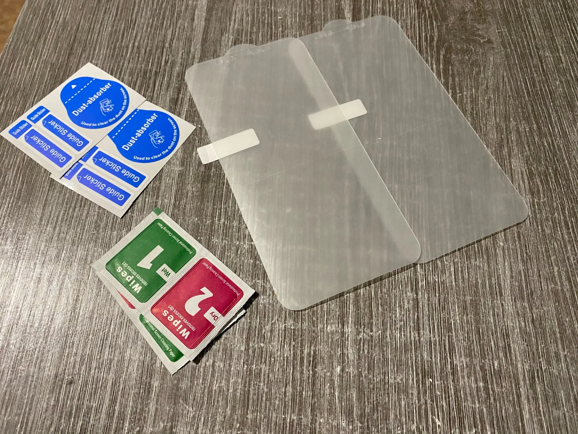 В комплекте было 2 матовых пленки. Мне лично нравится эффект легкой зернистости и отсутствие блеска (почти не остаются отпечатки пальцев), однако ни всем это не нравится, потому что нет большого искажений и яркости. P.s после клея могут быть пузырьки, которые сами исчезнут в течение 5-6 часов.