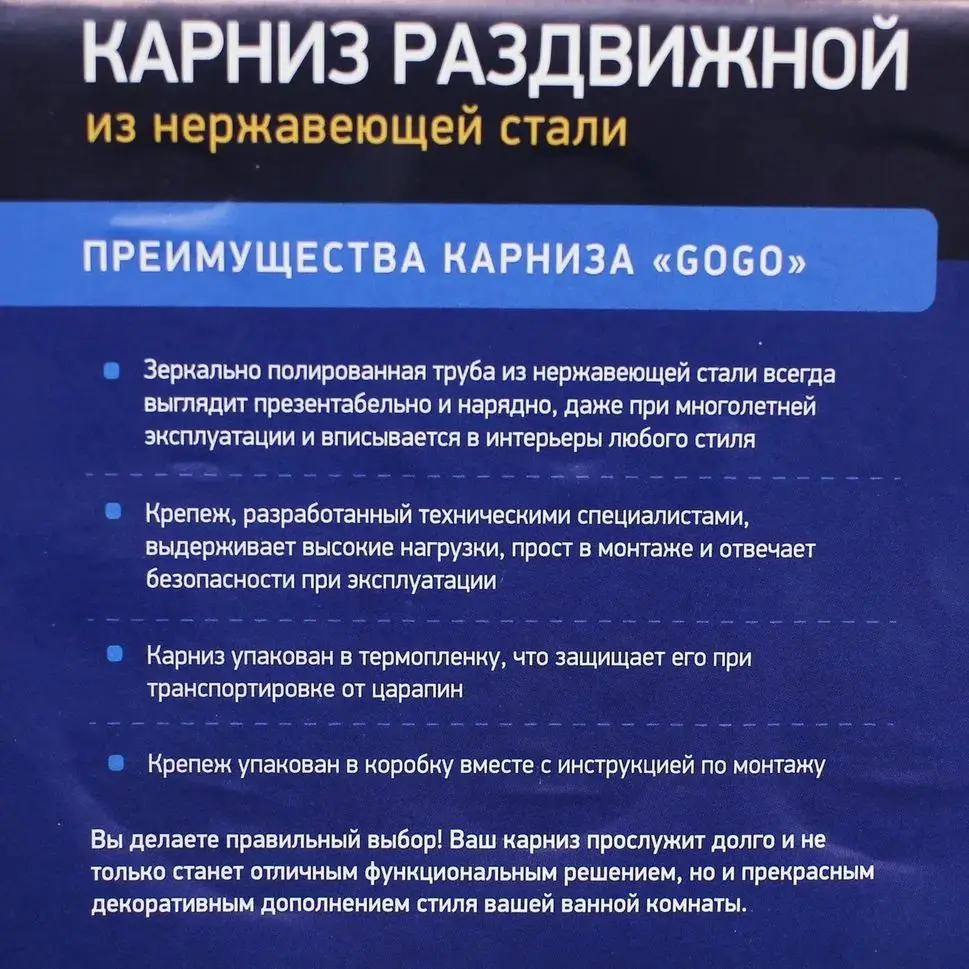 Карниз GoGo 180 телескопический нержавеющая сталь размер 110х180 надежное крепление