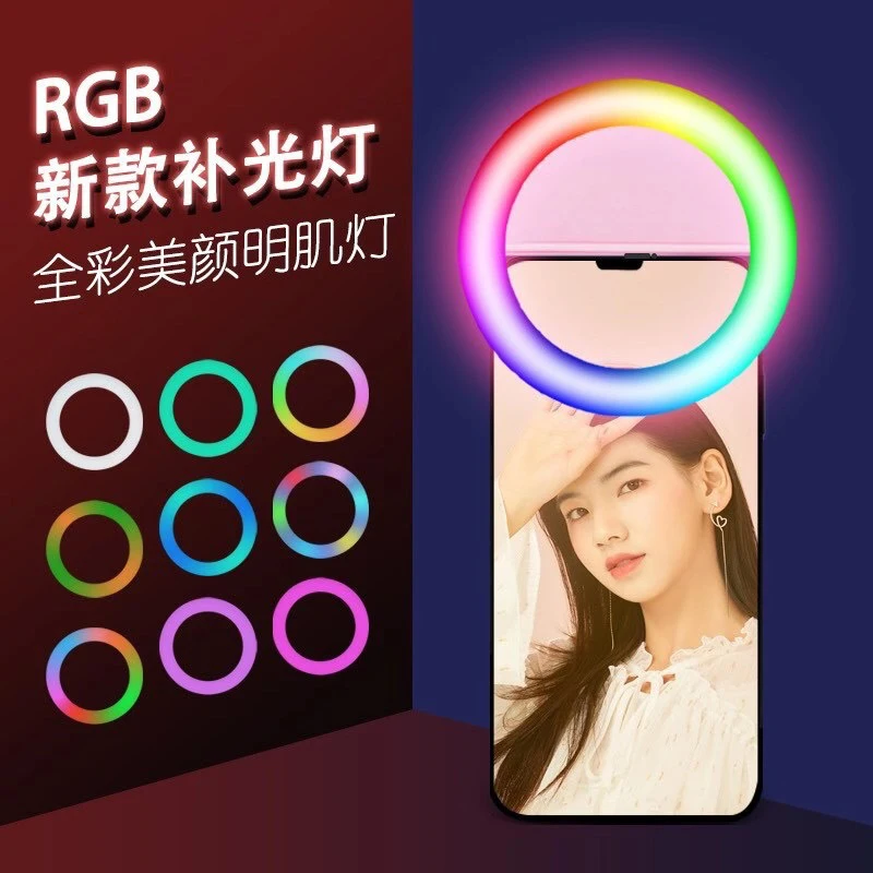 Светодиодный кольцевой светильник для селфи для объектива мобильного телефона, портативный цветной светильник RGB для вспышки, светильник s для мобильного телефона YouTube, заполняющий светильник