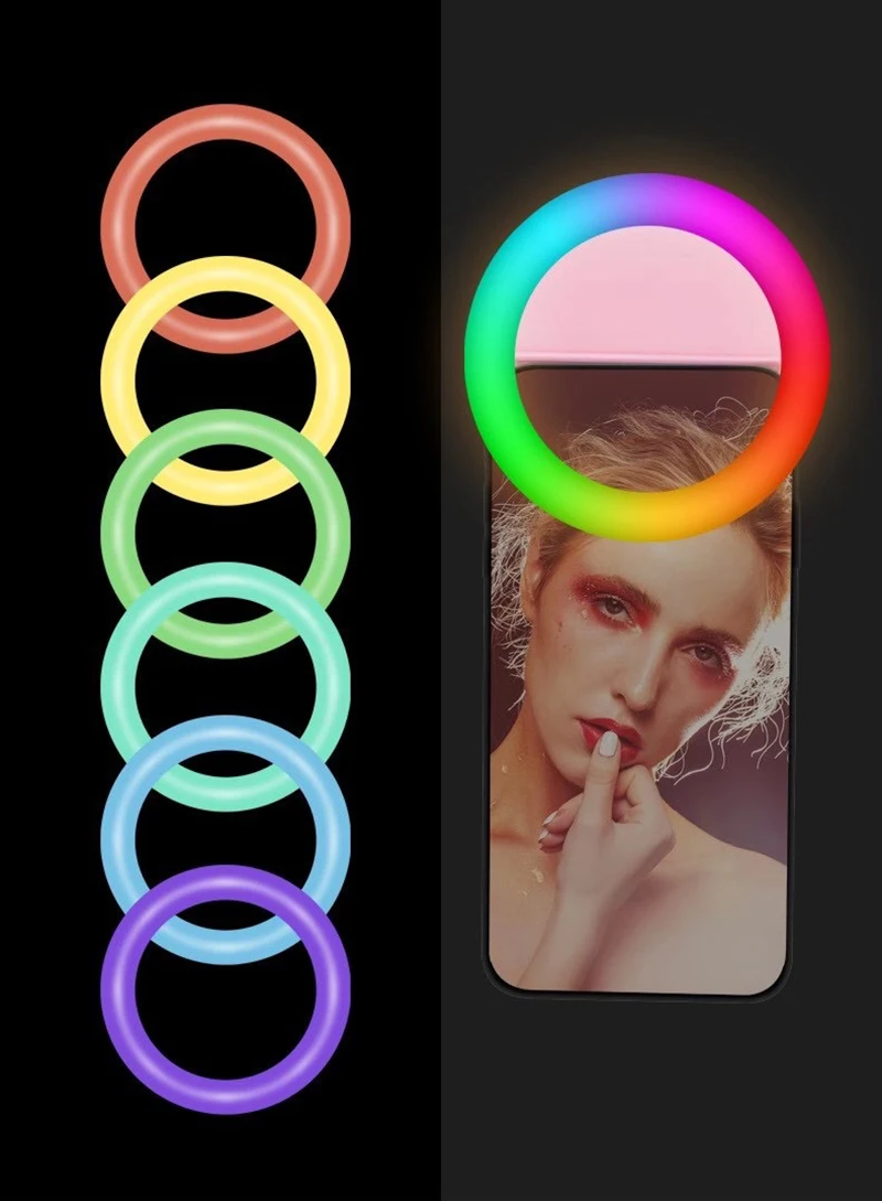 Светодиодная кольцевая лампа для селфи для объектива мобильного телефона, портативная разноцветная вспышка для телефона на YouTube