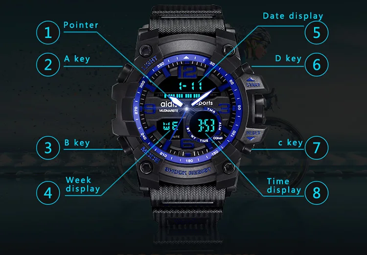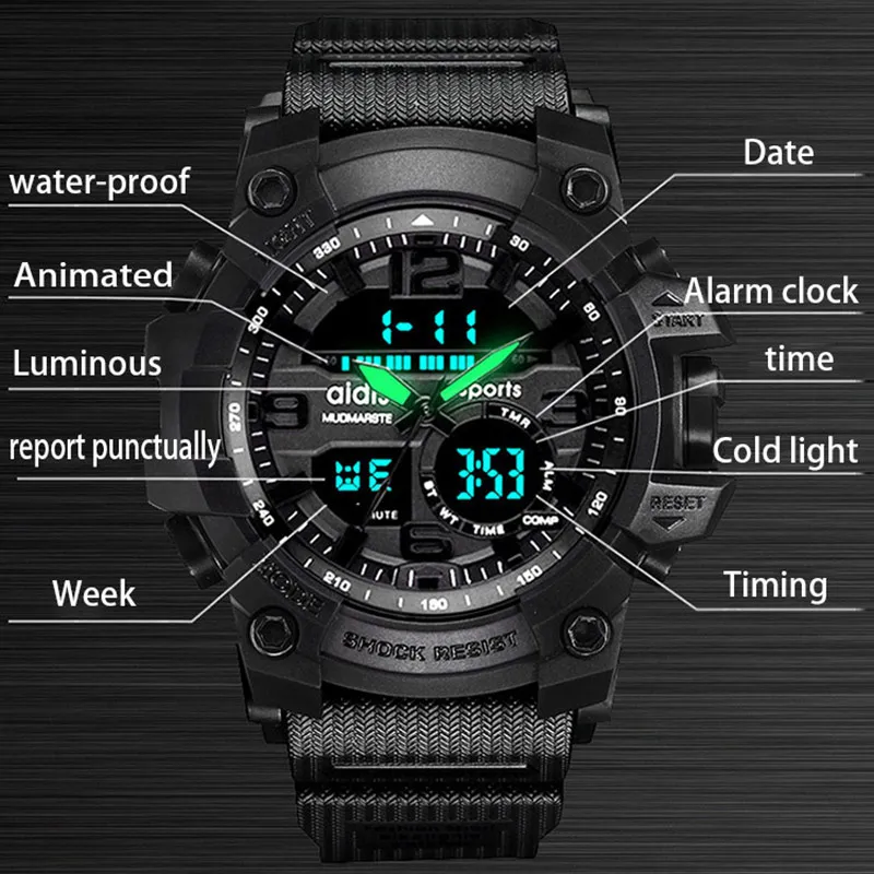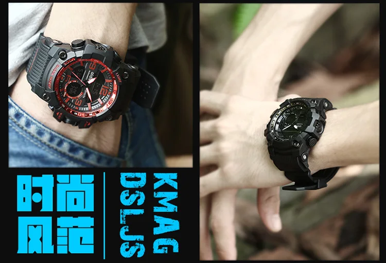 ADDIES G Стиль Shock часы Для мужчин в стиле милитари Для мужчин s часы Водонепроницаемый спортивные наручные часы Dual Дисплей наручные мужские часы Relogio Masculino