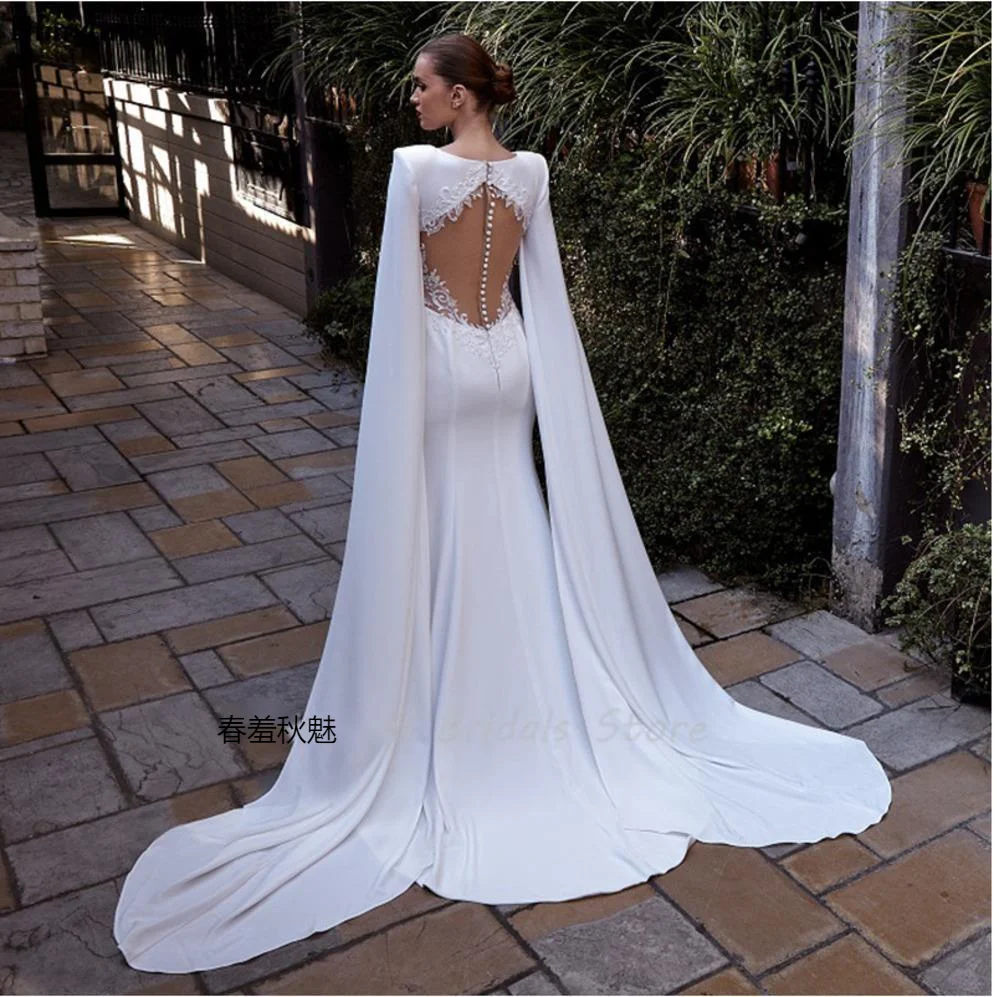 Свадебное платье-Русалка с длинным рукавом, Кружевная аппликация, пляжное платье невесты