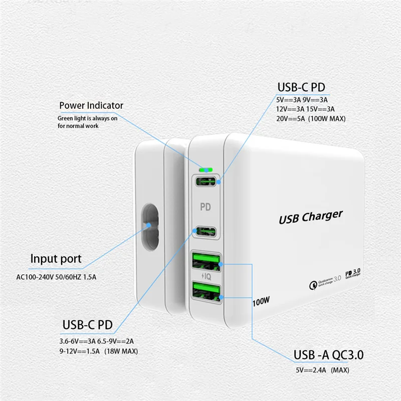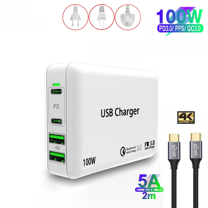 Зарядное устройство USB Type-C с поддержкой быстрой зарядки, 100 Вт