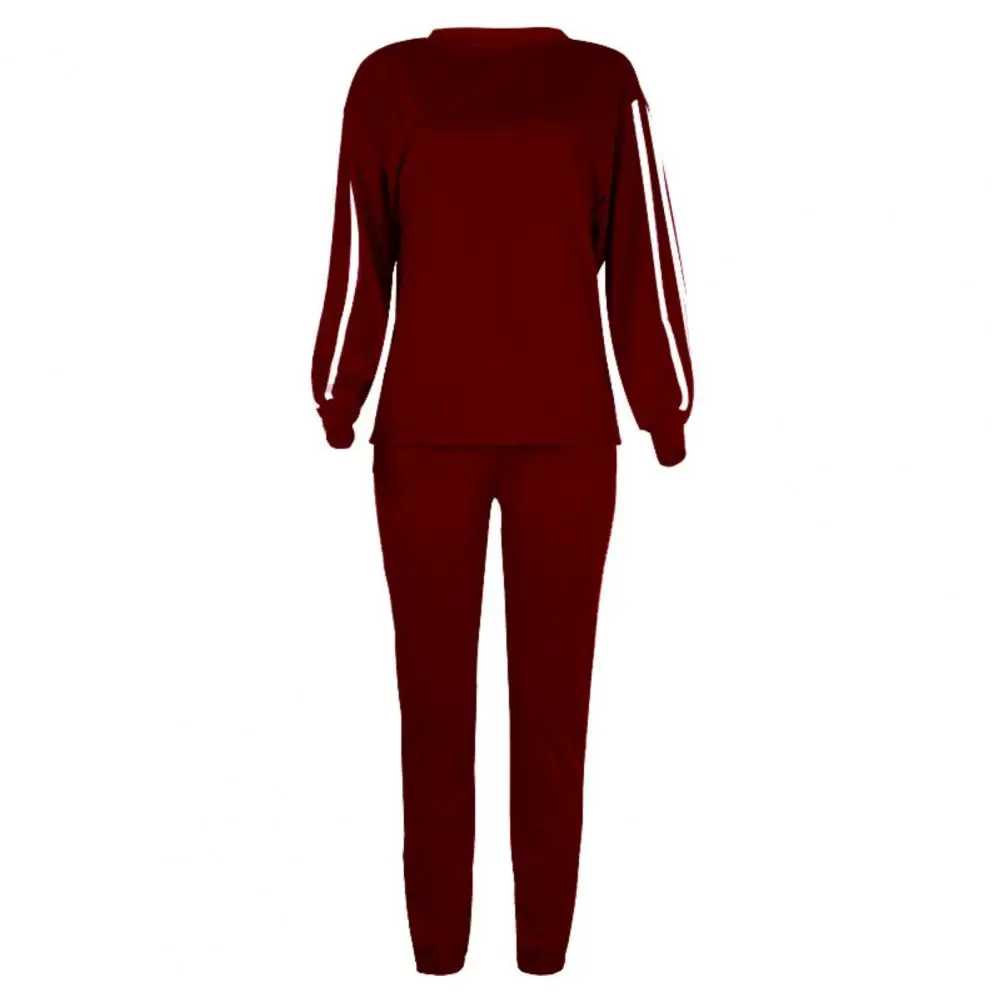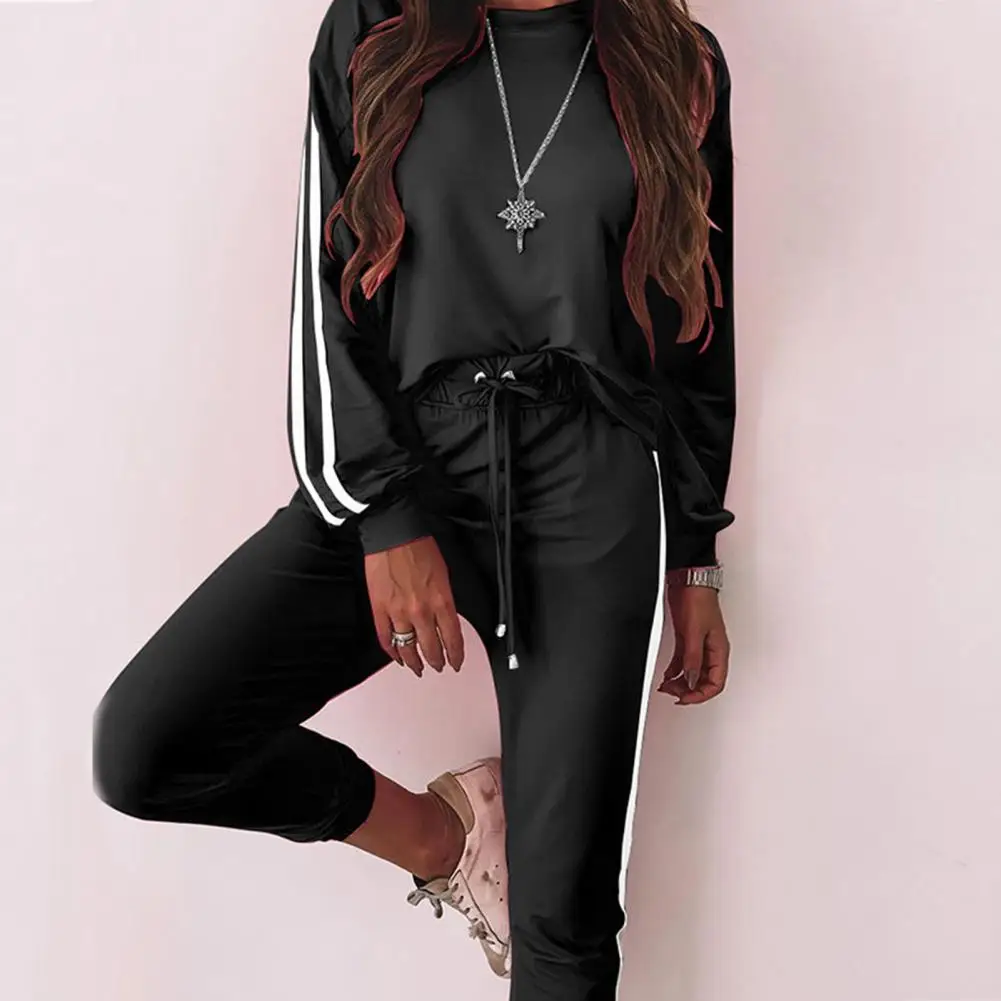Женский брючный костюм с круглым вырезом, свободная блузка с длинным рукавом и брюки в полоску, одежда для отдыха на осень, 2021