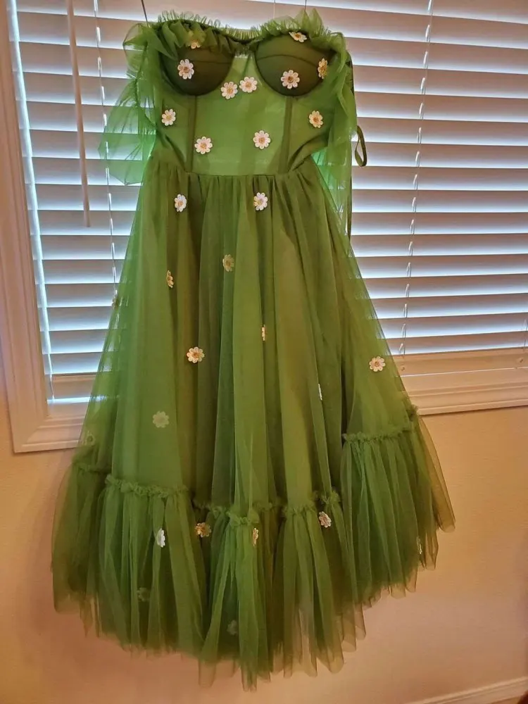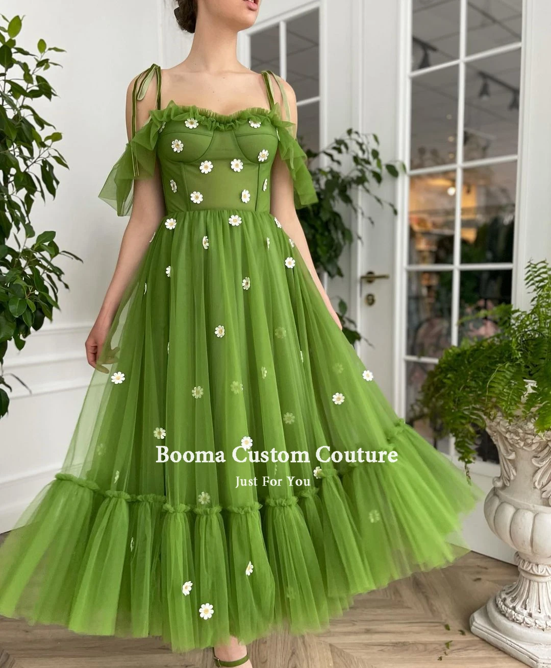 Зеленые платья Booma для выпускного вечера с открытыми плечами на тонких бретелях с оборками, платья для выпускного вечера с ромашками, свадебные платья
