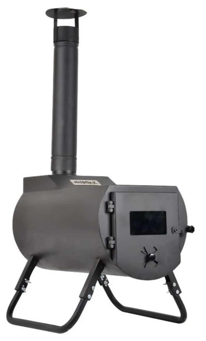Когда ножки, плита и четырехсекционный дымоход упакованы для переноски, они достигают небольшого размера.