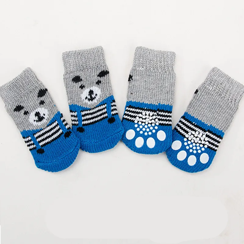 Материал: полиэстер; Размер: S Противоскользящий латекс по низу для sLТеплый и мягкий для ваших питомцев, который будет проходить зимой. Носки с принтом в виде галстука-бабочки с милыми накладки-лапки. Защищают деревянные полы от царапин. Дышащий и мягкий, без аллергии на вашего питомца. 1 комплект включает носки 4 шт., не хватает ни одной ноги. Описание: Материал: полиэстер Размер: S Размер, ширина горловины носка, длина, ширина подошвы