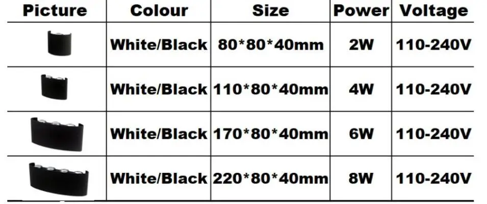 Спецификация:【Название продукта 】: светодиодный настенный светильник【Мощность 】: 2 Вт/4 Вт/6 Вт/8 Вт/10 Вт/12 Вт[Излучаемый Цвет]: теплый белый (2900-3200K)/холодный белый (6000-6500K) натуральный белый (4000K-4500K)[Материал корпуса]: алюминий[Цвет корпуса]: белый/черный【Угол луча 】: 60 градусов[Срок службы]:> 10000 часов[Гарантия]: 1 год【Регулируемый 】: нет
