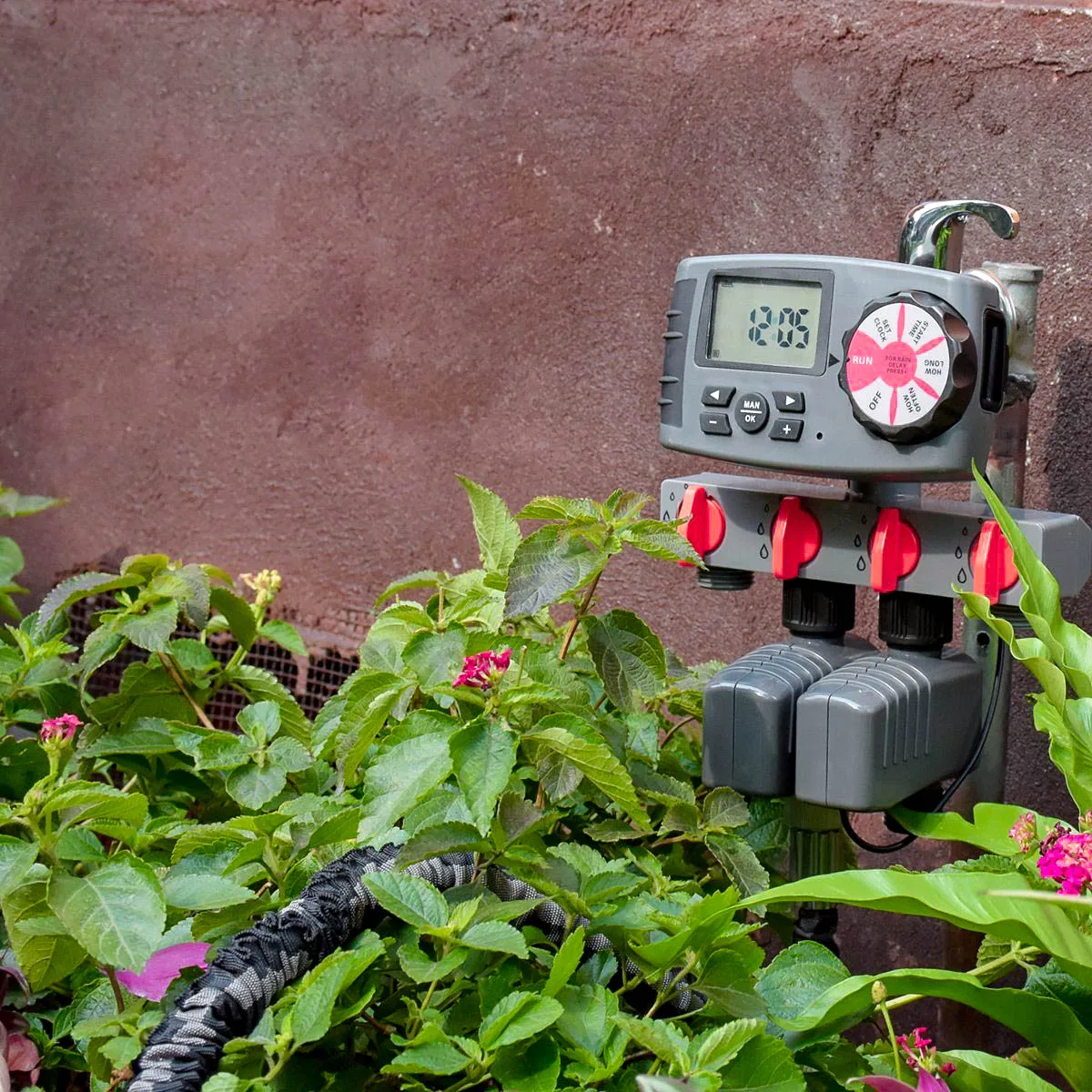 Автоматическая система полива для сада, 4-зонный ЖК-дисплей, Таймер подачи воды с 2 соленоидными клапанами