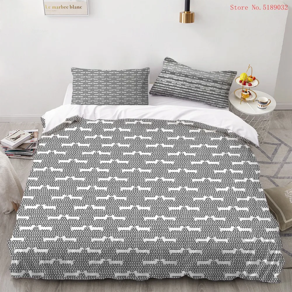 Такса постельного белья и рисунком в виде милых собачек пара печати пододеяльник серый белая ПЭТ пододеяльник односпальная кровать двуспальная кор Комплект постельного белья