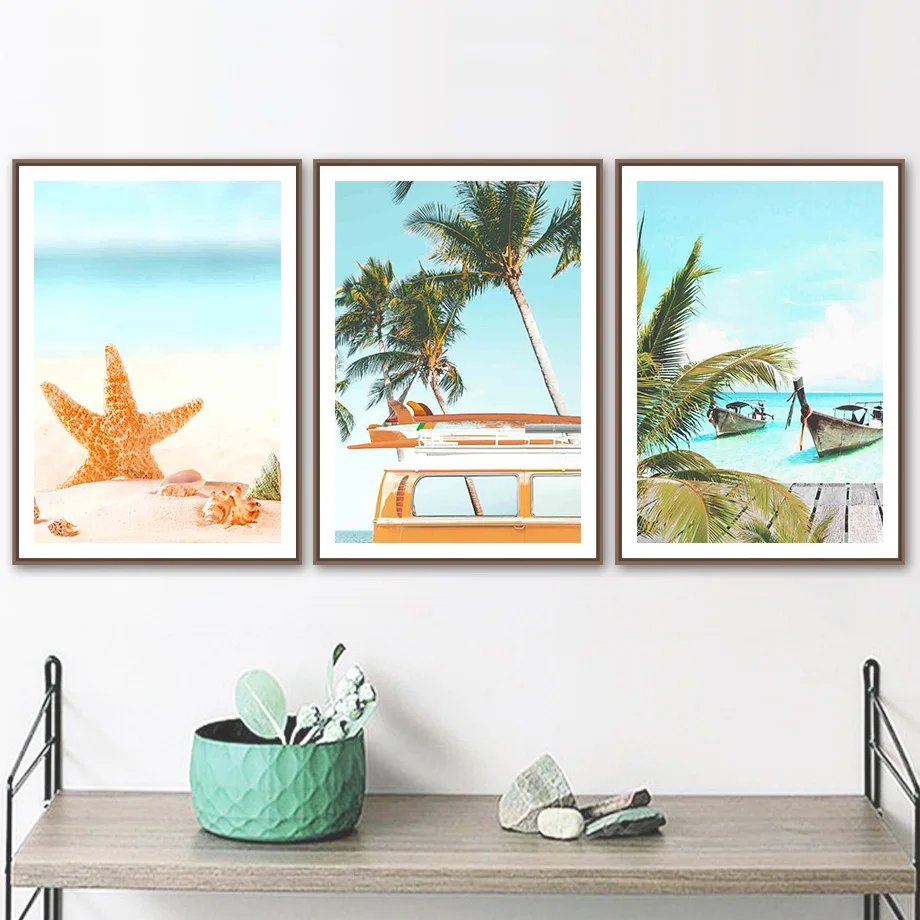 Настенная картина с изображением бежевого пейзажа, пляжа, ракушки, ...