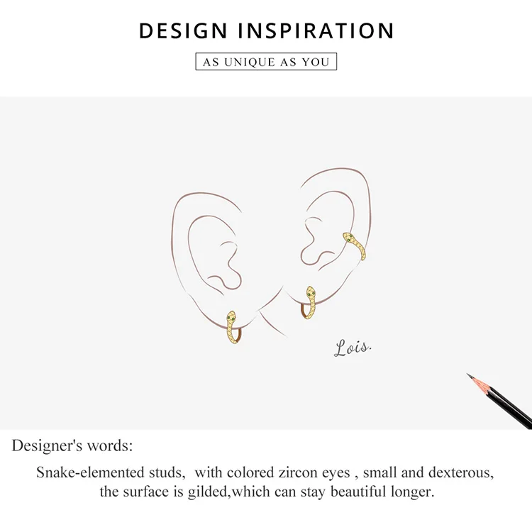 Серьги-змейки женские из серебра 925 пробы, 1 шт.