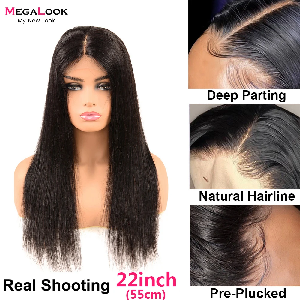 Парик из натуральных волос Megalook Remy, парик из прямых перуански...