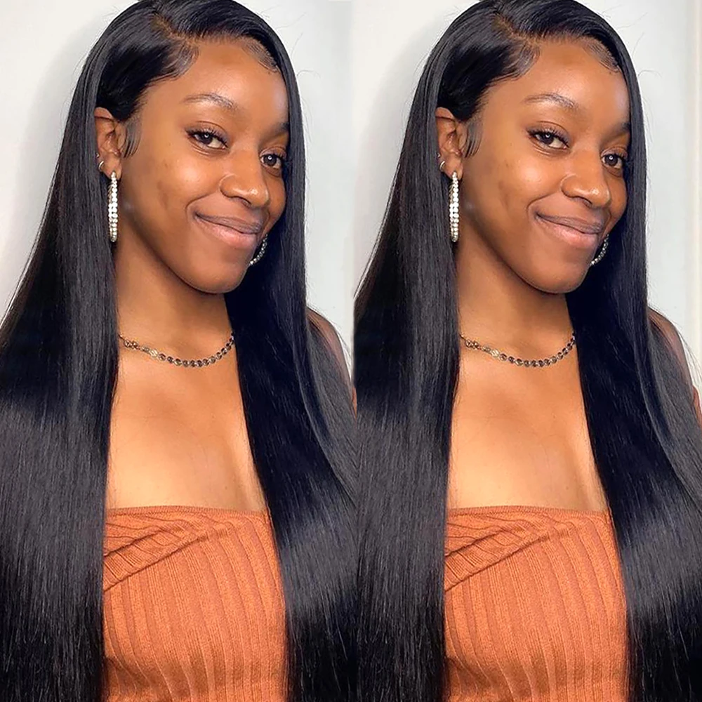Парик Из прямых волос с косточками 30 дюймов, прозрачные парики фронта шнурка, парики из натуральных бразильских волос Реми для чернокожих женщин 13x 4, парик фронта шнурка