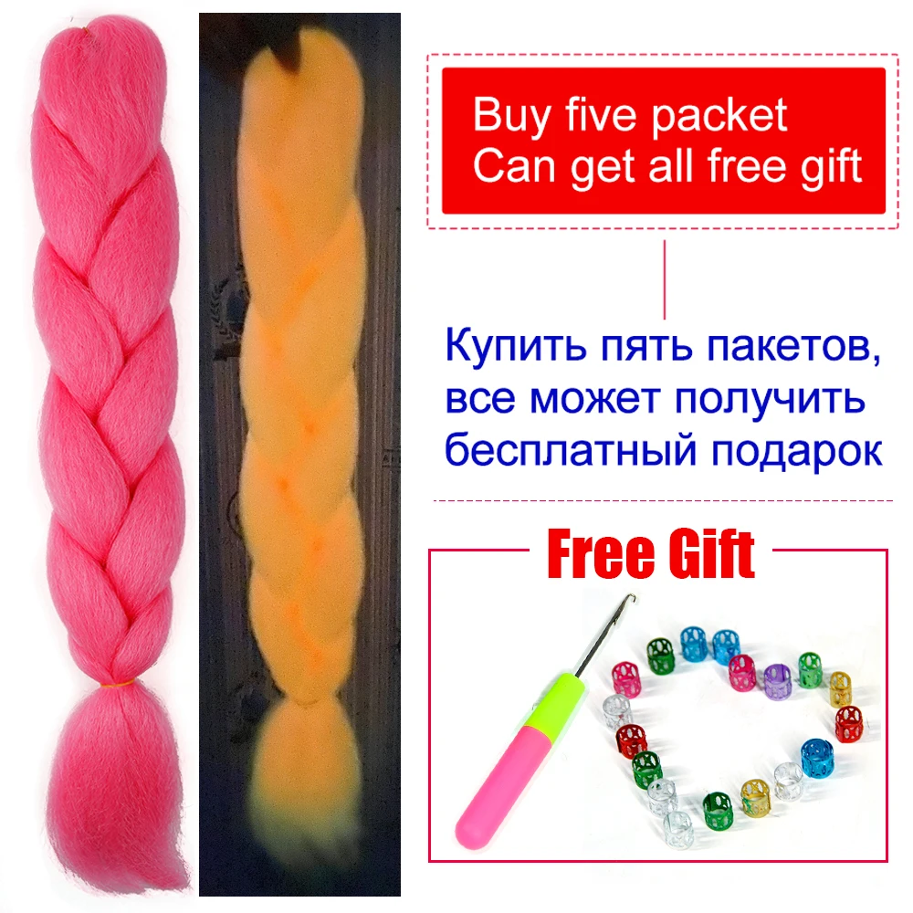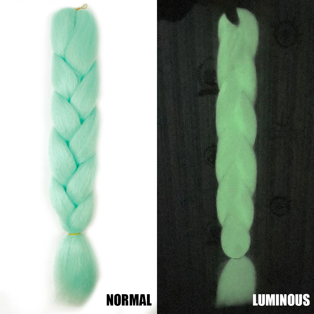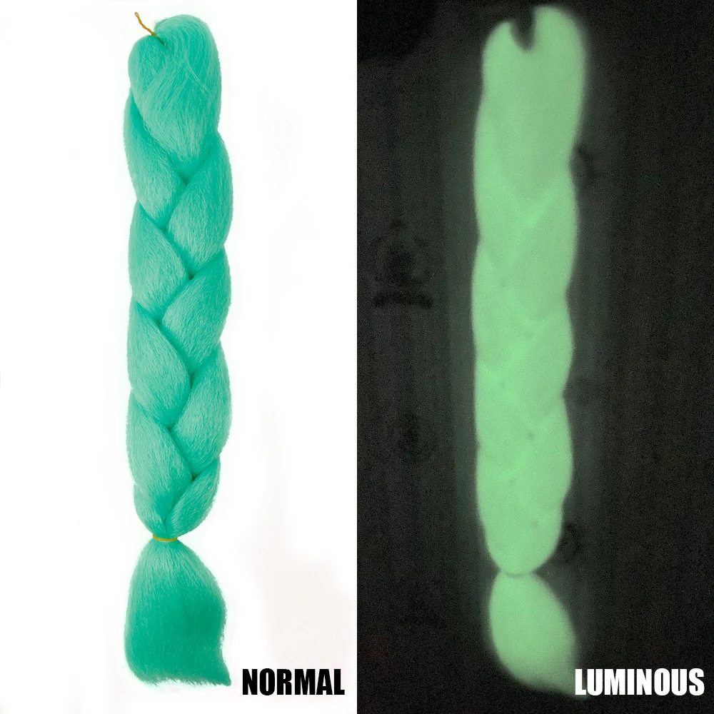 Неоновые Светящиеся Волосы Florescent светильник плетеные волосы большие синтетические косы Светящиеся Волосы в темноте 24 дюйма 100 г для волос