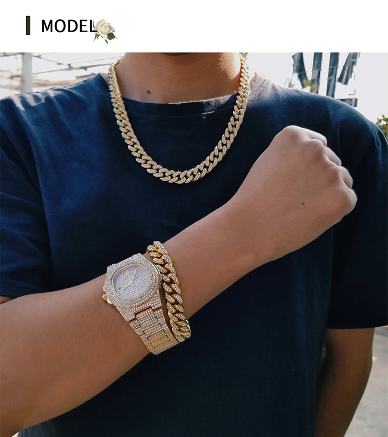 Ожерелье для часов, браслет в стиле хип-хоп, панцирная кубинская це...