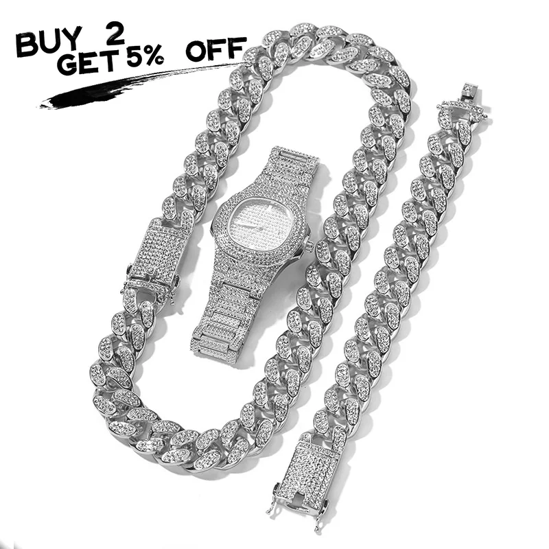 Набор из колье + часы + браслет AITIEI, кубинская цепочка Майами, с...