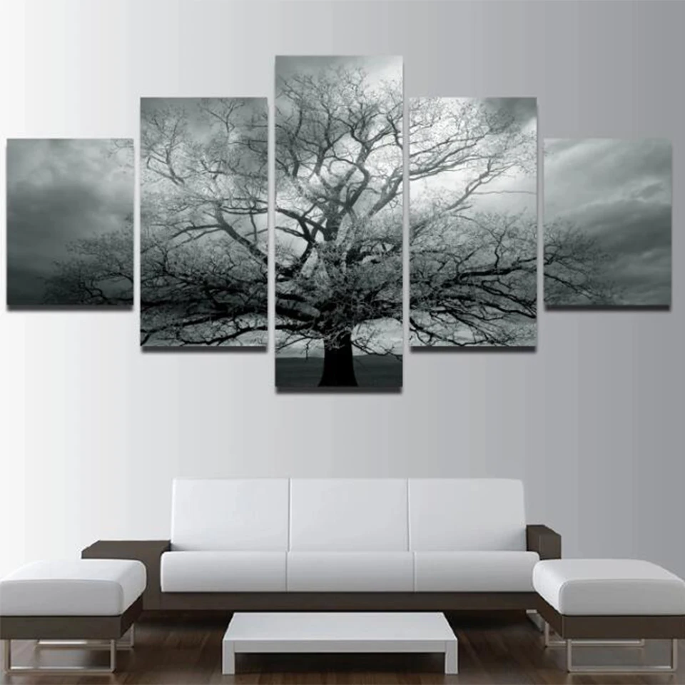 Многопанельная черно-белая «дерево» Алмазная картина полностью квадратная дрель 3D картина Стразы, алмазная вышивка 5 шт. гостиная