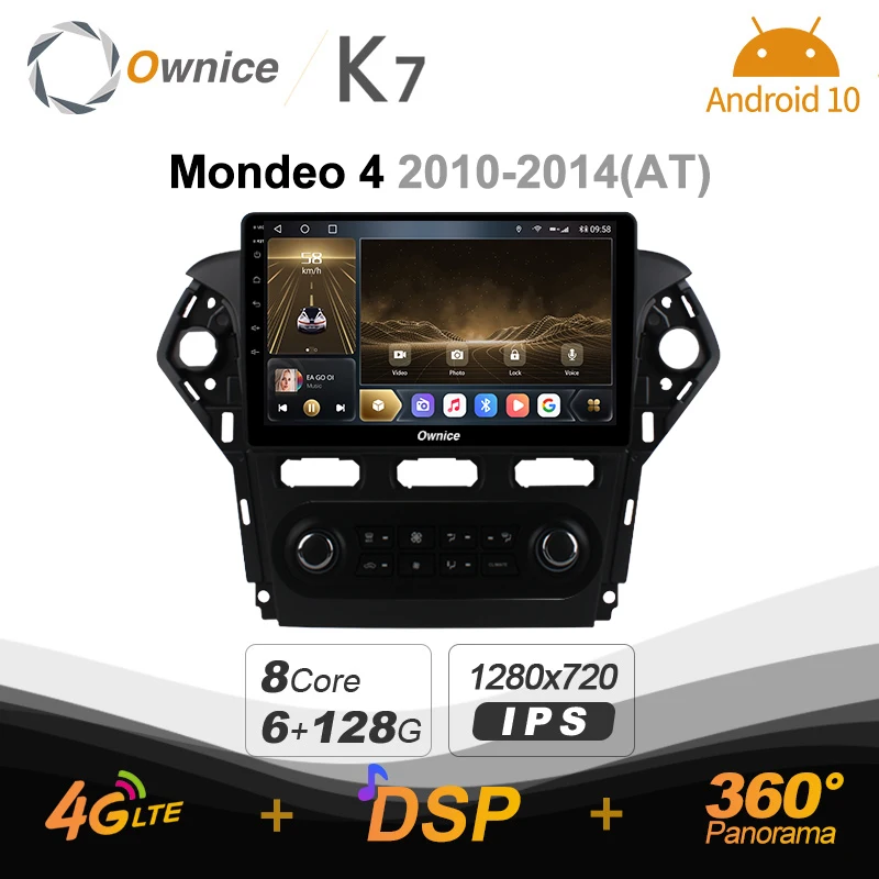Автомагнитола K7 Ownice 2 Din, мультимедийный плеер на Android 10,0 для Ford Mondeo 4 2010 - 2014 с 8 ядрами A75 * 2 + A55 * 6 SPDIF 6G 128G 4G LTE