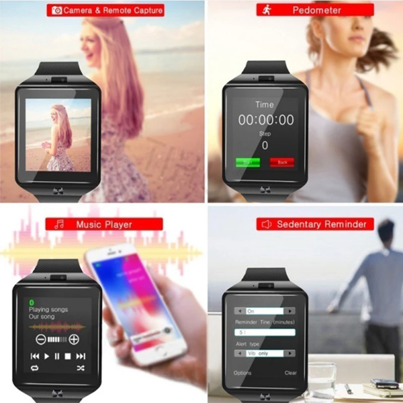 Смарт-часы DZ09 для мужчин и женщин, Смарт-часы с SIM-картой и слотом для TF-карты, камера, Bluetooth, Push-музыка, улучшенная версия, 2020