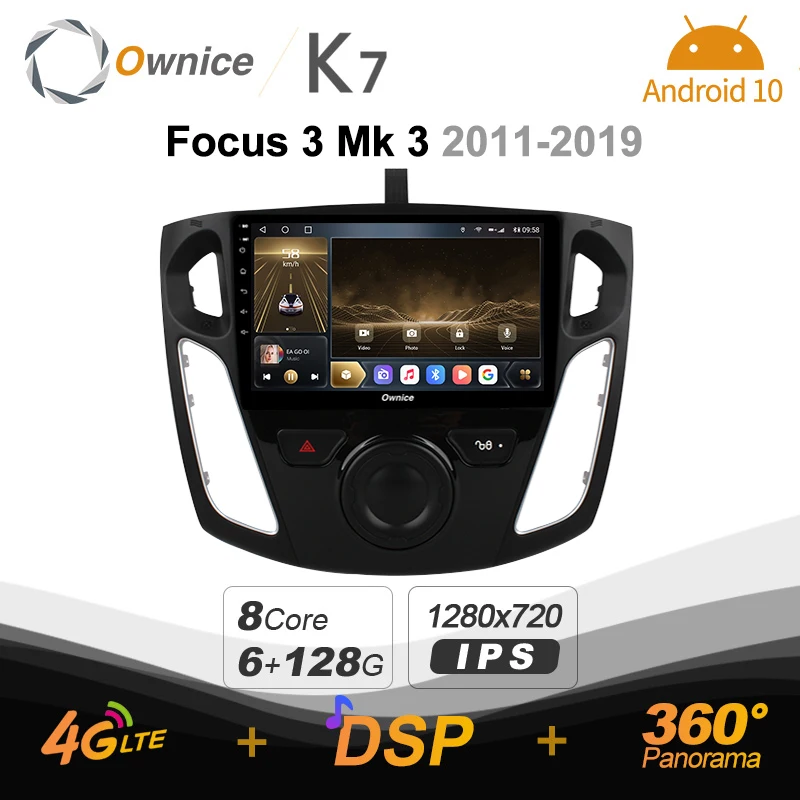 Автомагнитола K7 Ownice 2 Din, Android 10,0, для Ford Focus 3 Mk 3 2011 - 2019 с 8-ядерным процессором A75 * 2 + A55 * 6, SPDIF 6G 128G