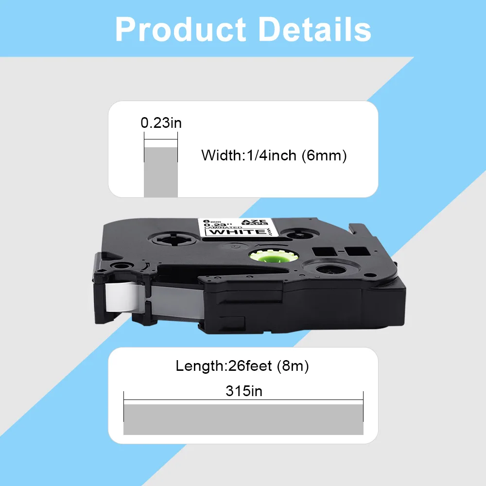 Фотоэтикетка, лента, совместимая с этикетками Brother TZe211, этикетка, лента 6 мм, черная на белом, фотоэтикетка для PTD210