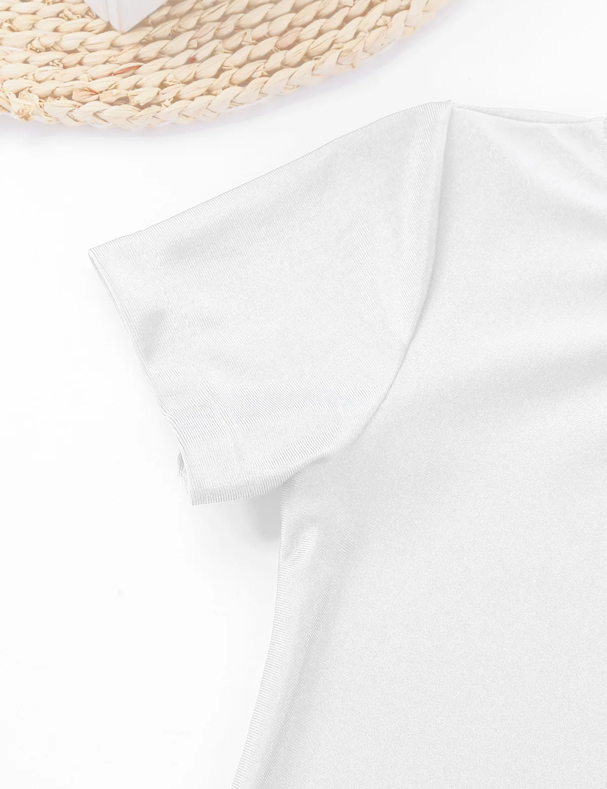 Короткие рукава, круглый вырез, однотонный дизайн. Приталенный крой, застежка-липучка.