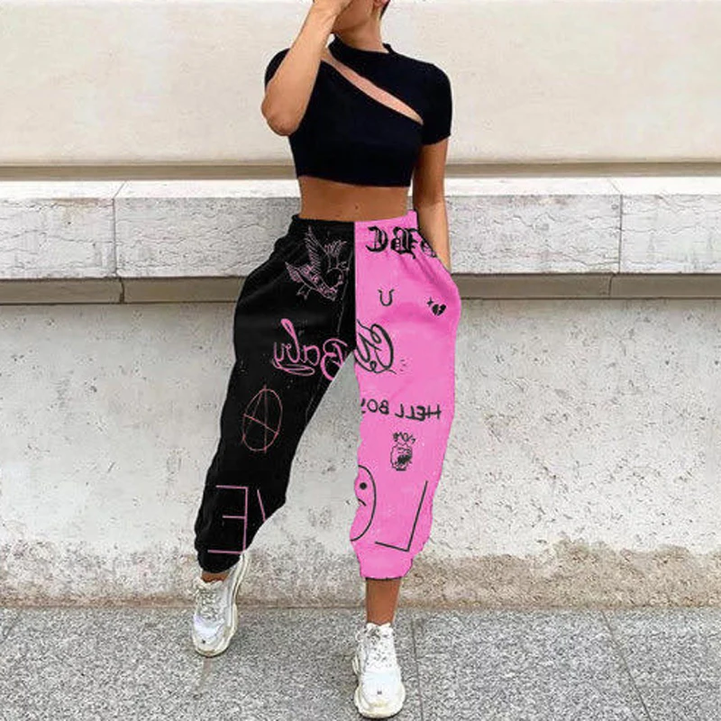 Брюки женские с высокой талией, модные повседневные штаны контрастн...