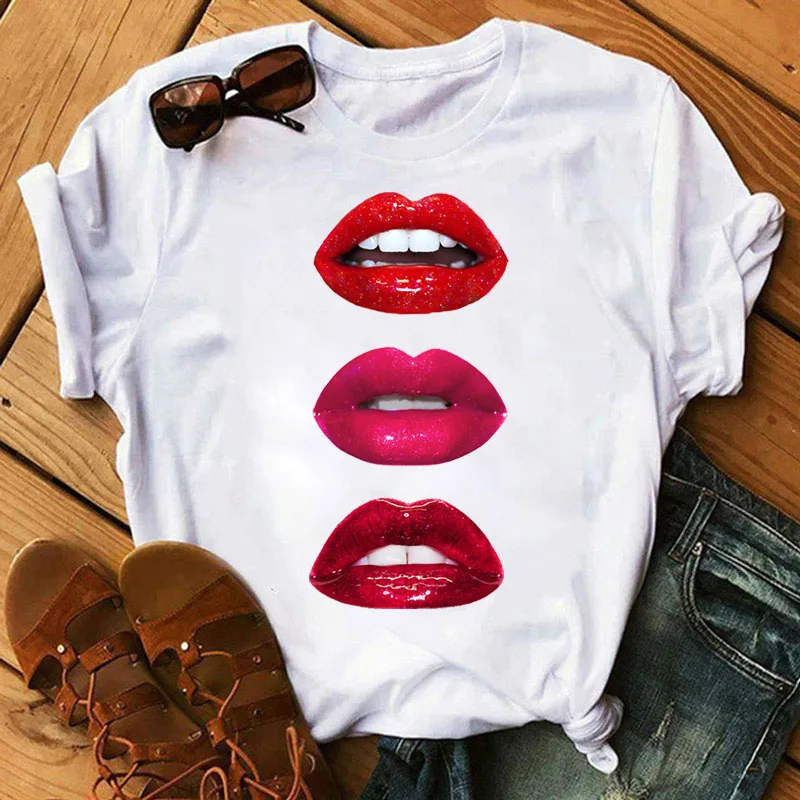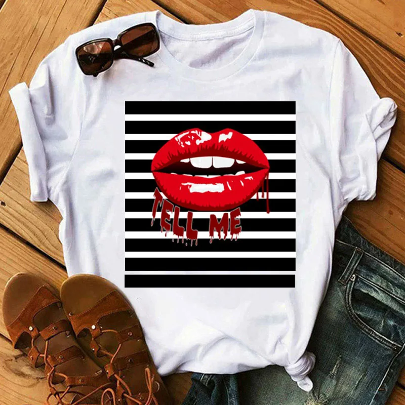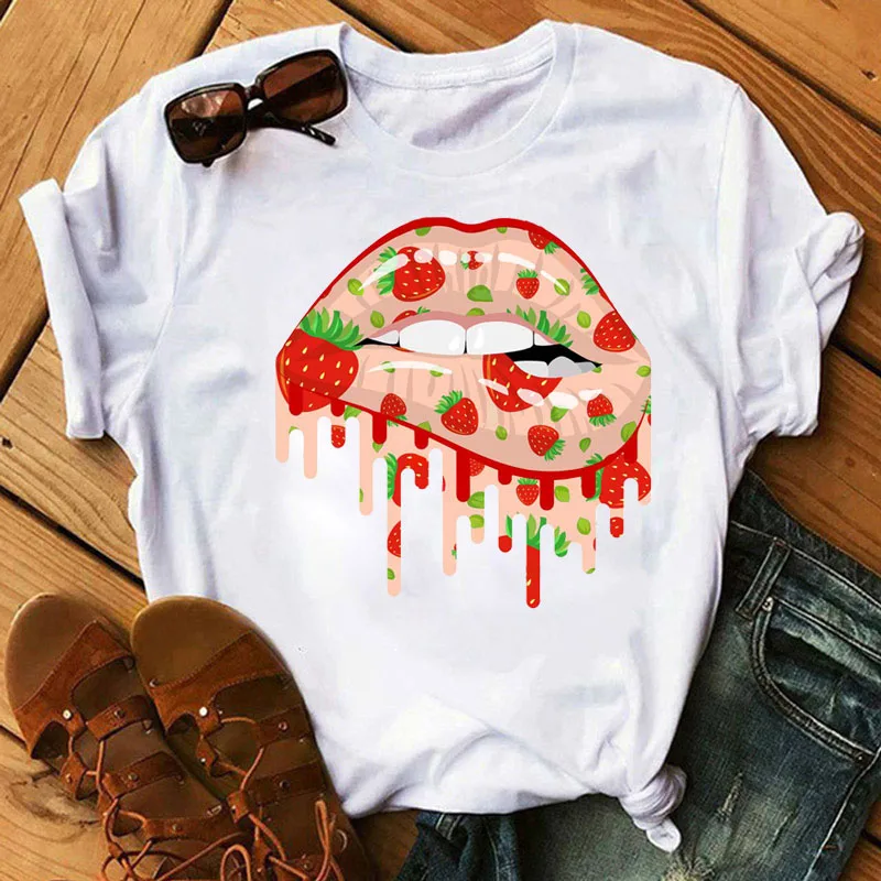 Женская футболка, модная косметика, черные губы в бриллиантах, капельный Графический Топ, летняя женская футболка, эстетичная белая женская футболка, топы