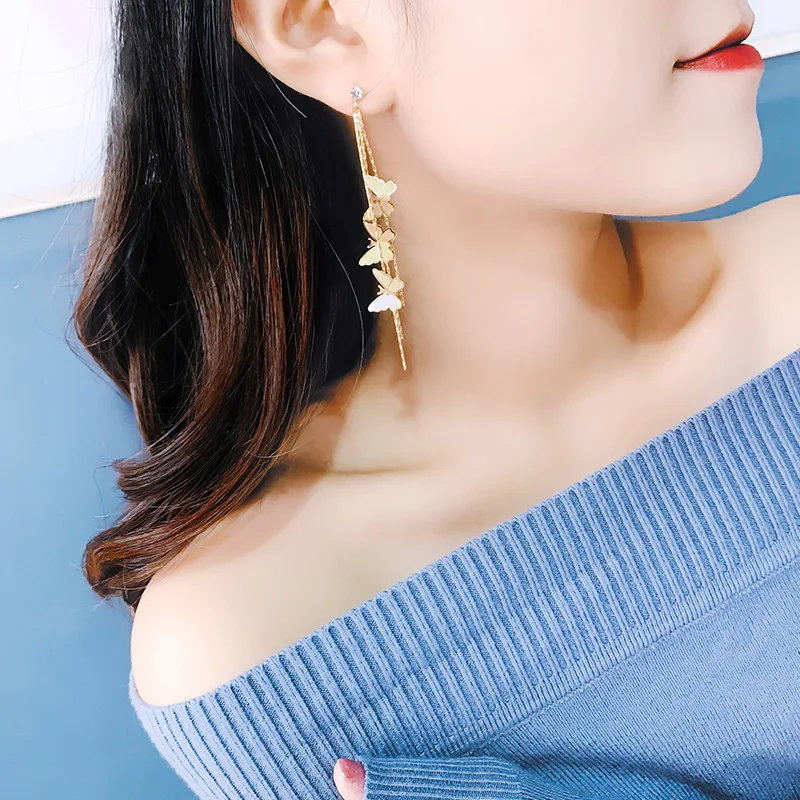 AINAMEISI 2021 новые длинные висячие серьги с бабочкой и кисточками для женщин глянцевые геометрические корейские серьги с закругленными углами модные ювелирные изделия