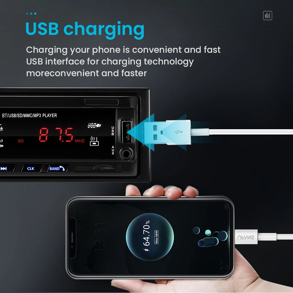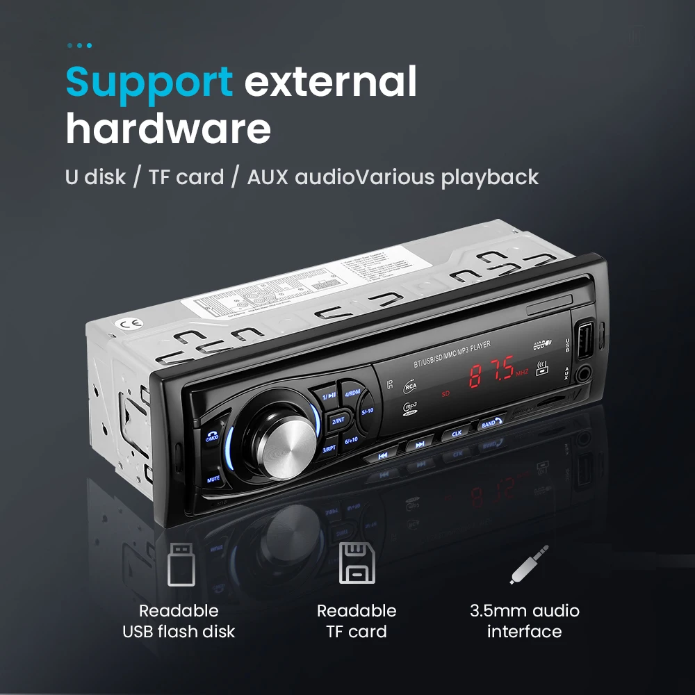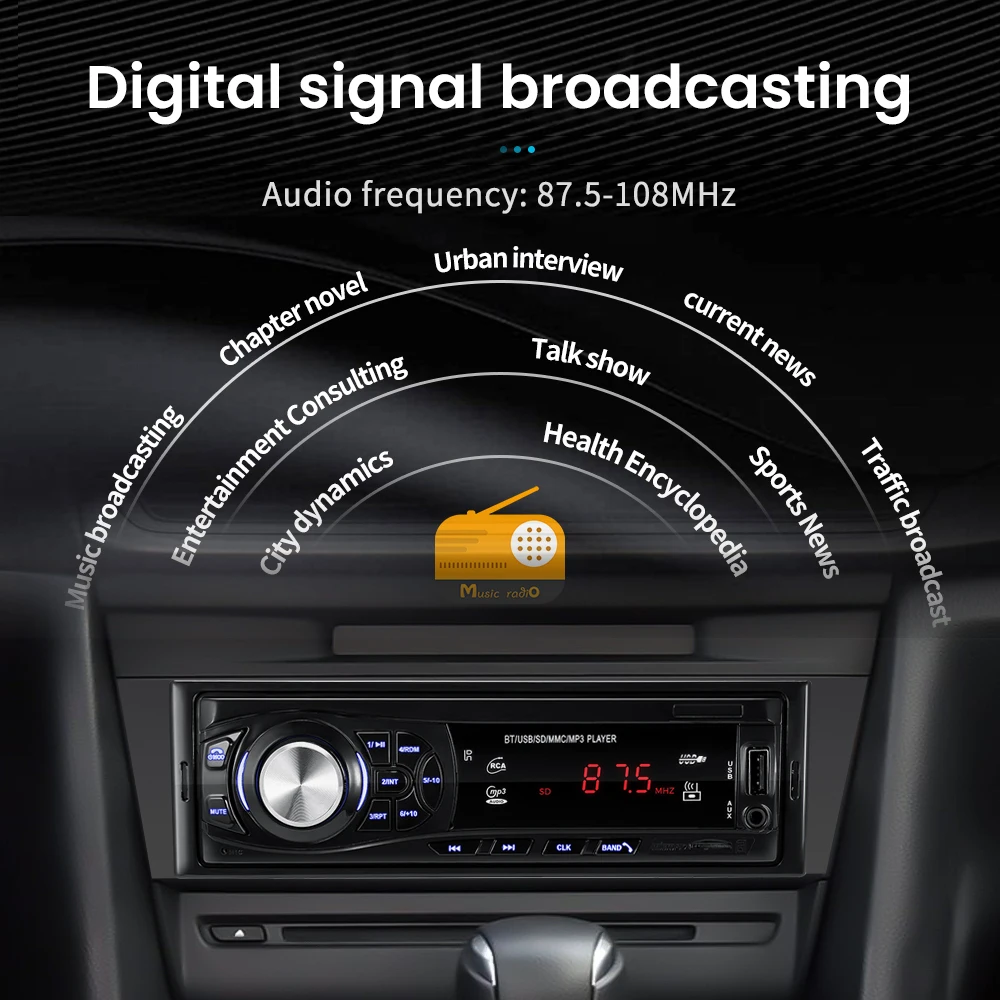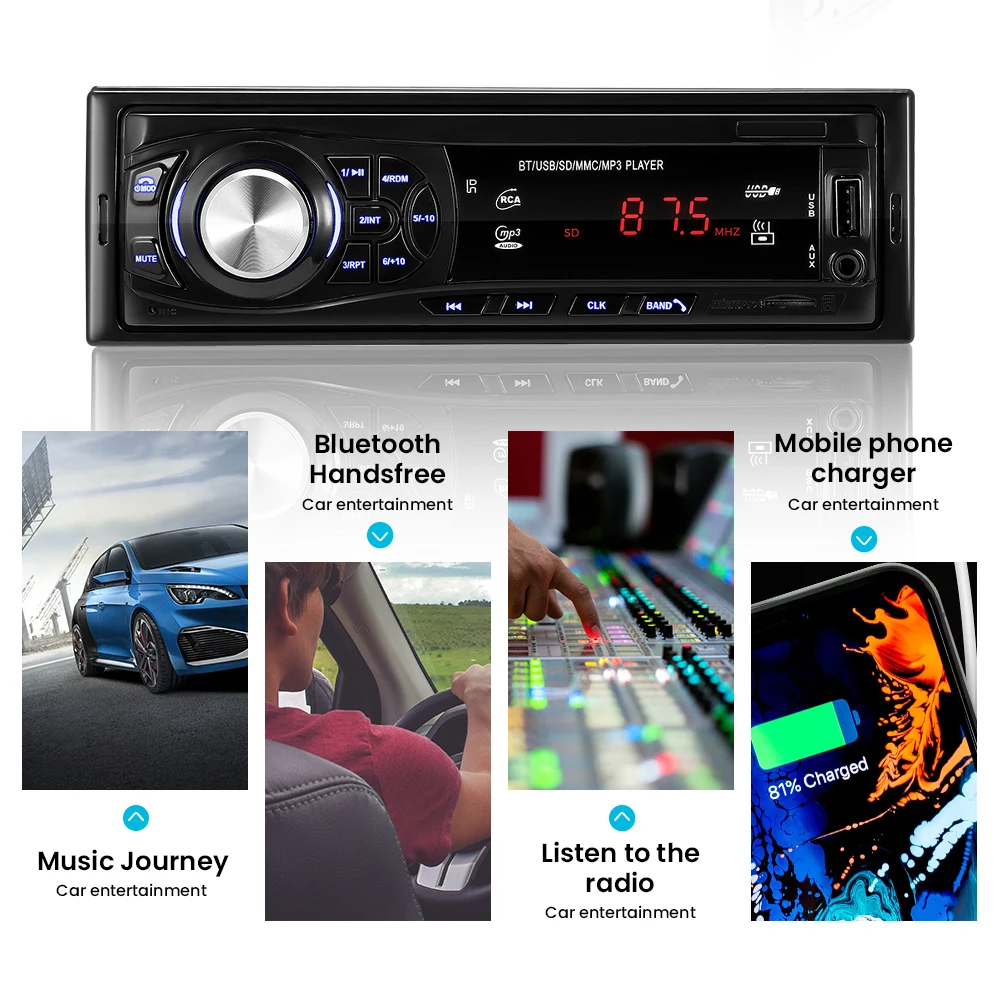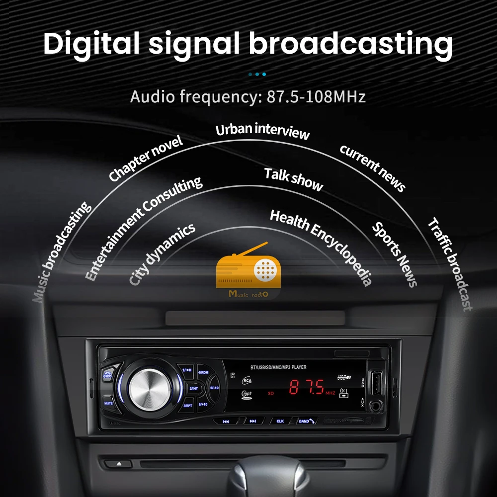 Автомобильный радиоприемник, стерео MP3-плеер, FM-радио приемник с Bluetooth, AUX-входом, USB, слот для TF-карты, пульт дистанционного управления в приборной панели