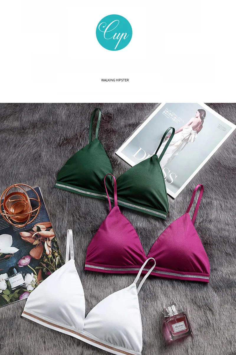 Бесшовное нижнее белье без косточек, Шелковый Бралетт, атласный бюс...