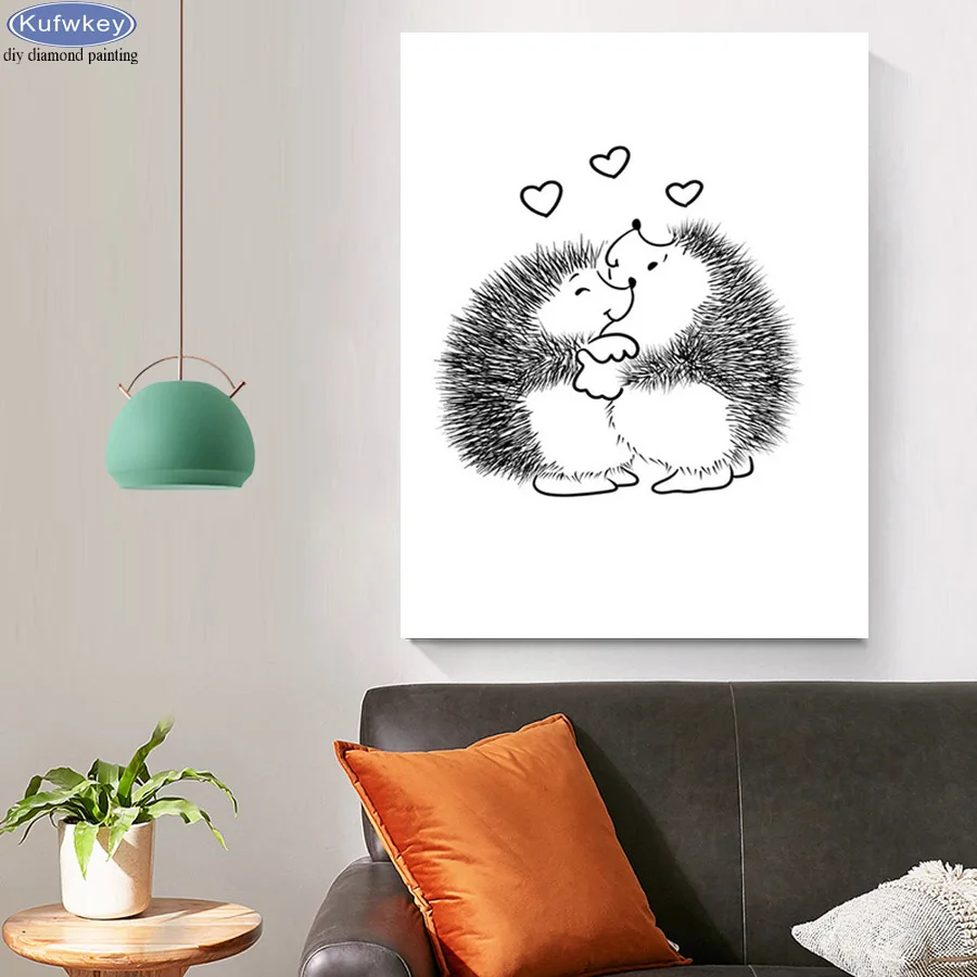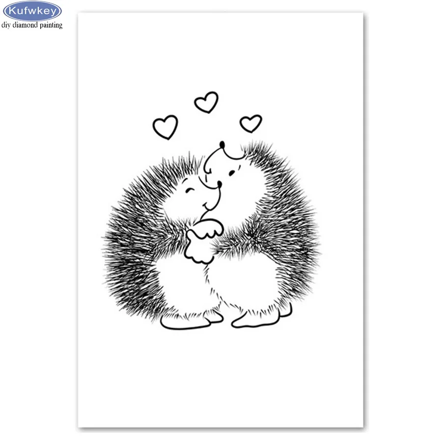 5D алмазная картина полный квадрат/круглый мультфильм Ежик черный белый минималистичный настенное искусство Алмазная мозаика вышивка Стразы