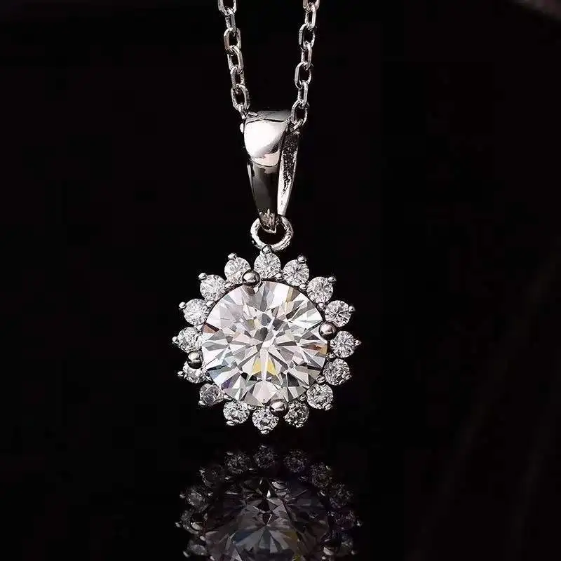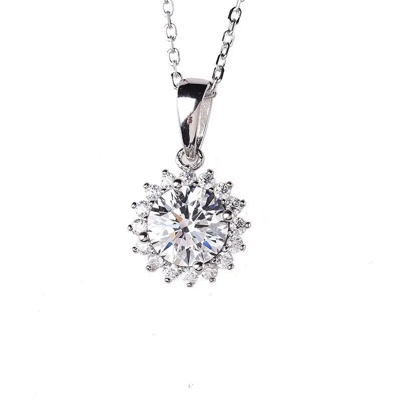 Ожерелье женское круглое из серебра 925 пробы с кулоном в виде подсолнуха