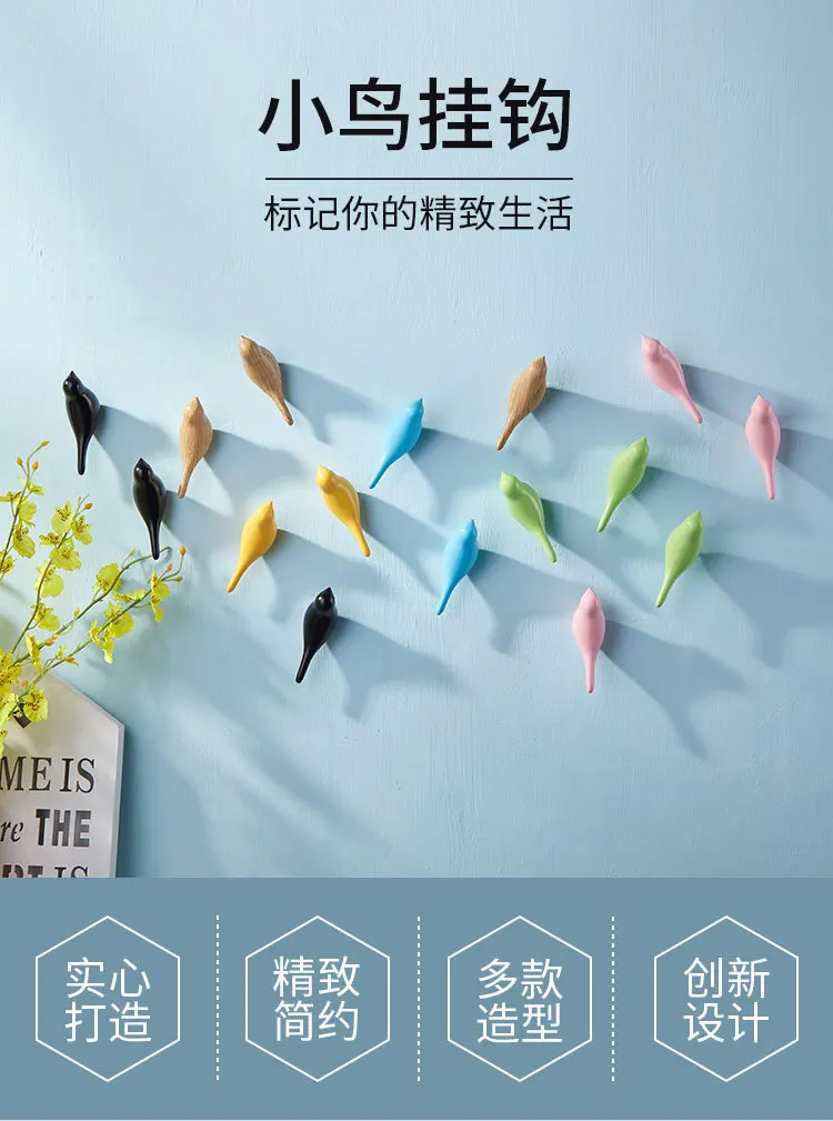 Настенные крючки с зернистой поверхностью, креативные Крючки 3D в форме птицы из смолы для спальни, двери после крючки в виде животных, крючок для пальто, одна настенная вешалка, 345 шт.