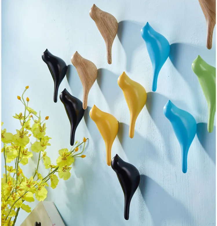 Креативные настенные крючки птица украшения древесной смолы крючки ...