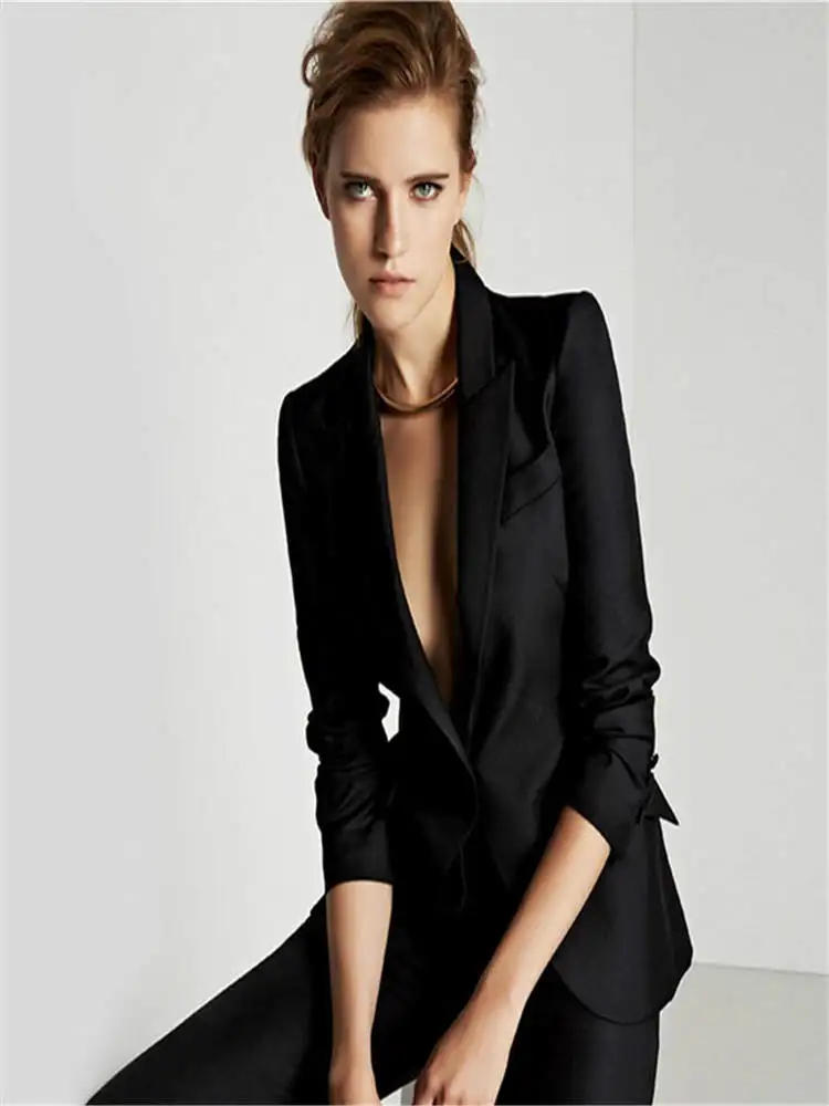 Женские Брючные костюмы с пиковым отворотом, женские деловые костюм...