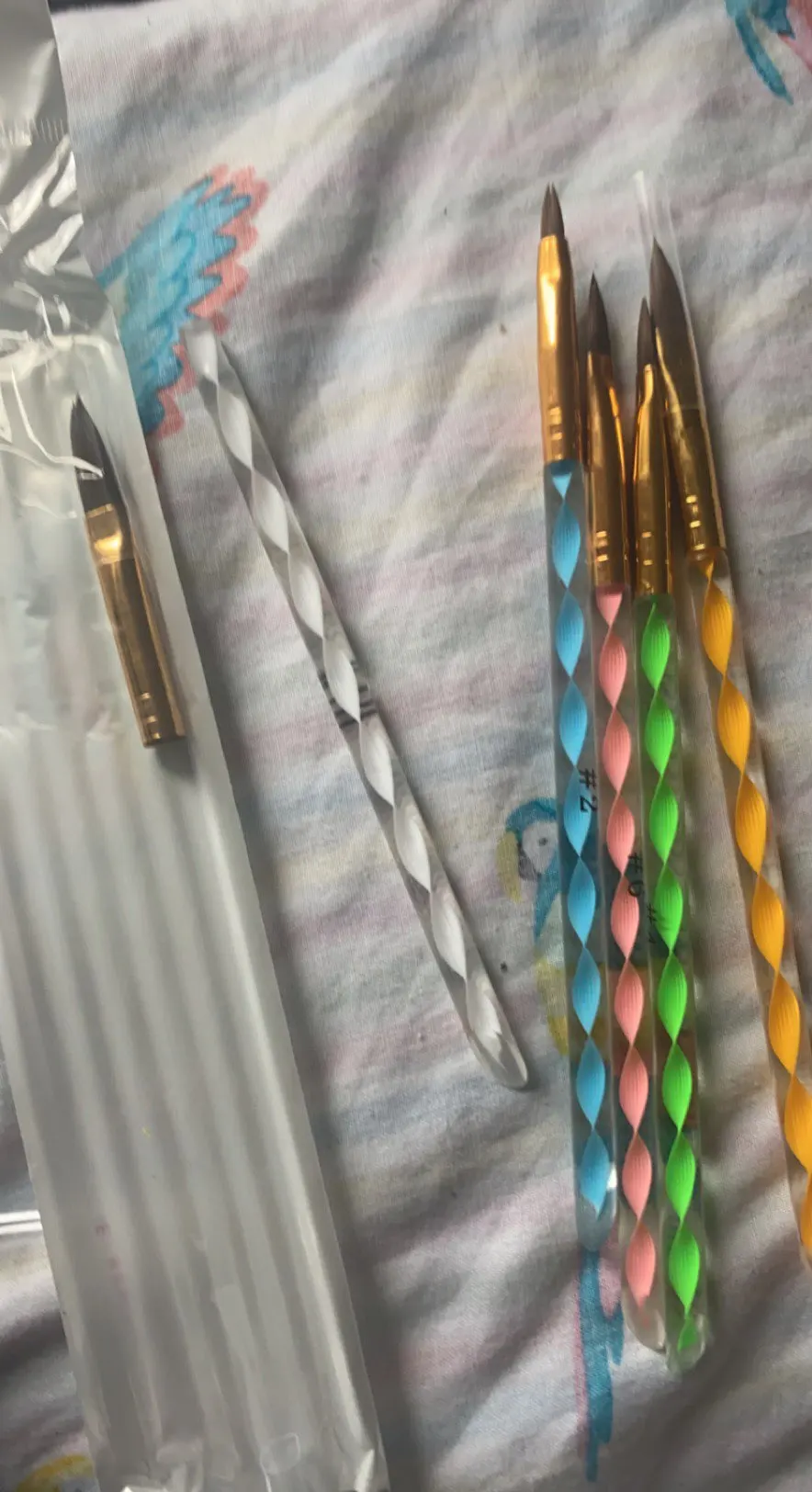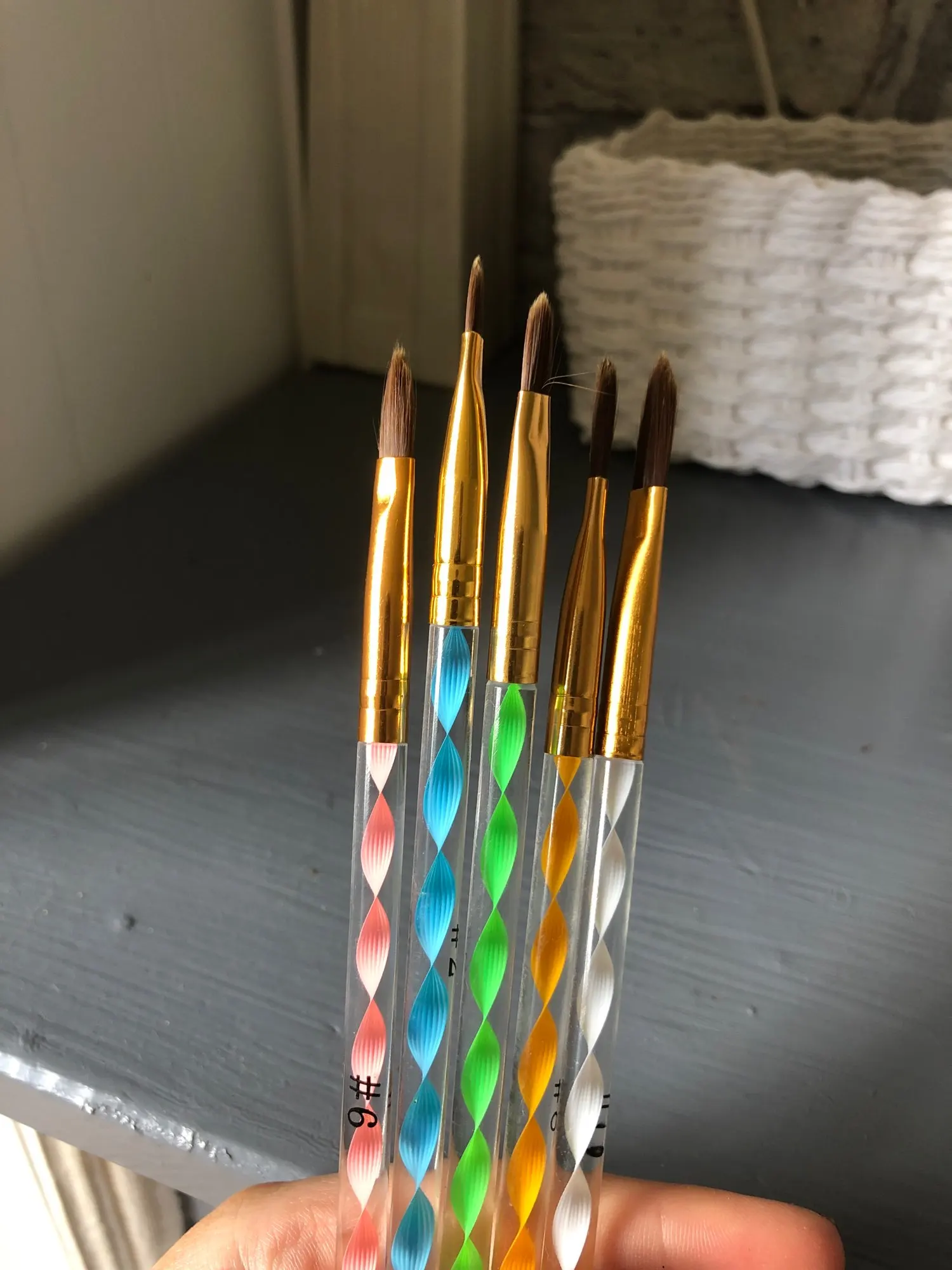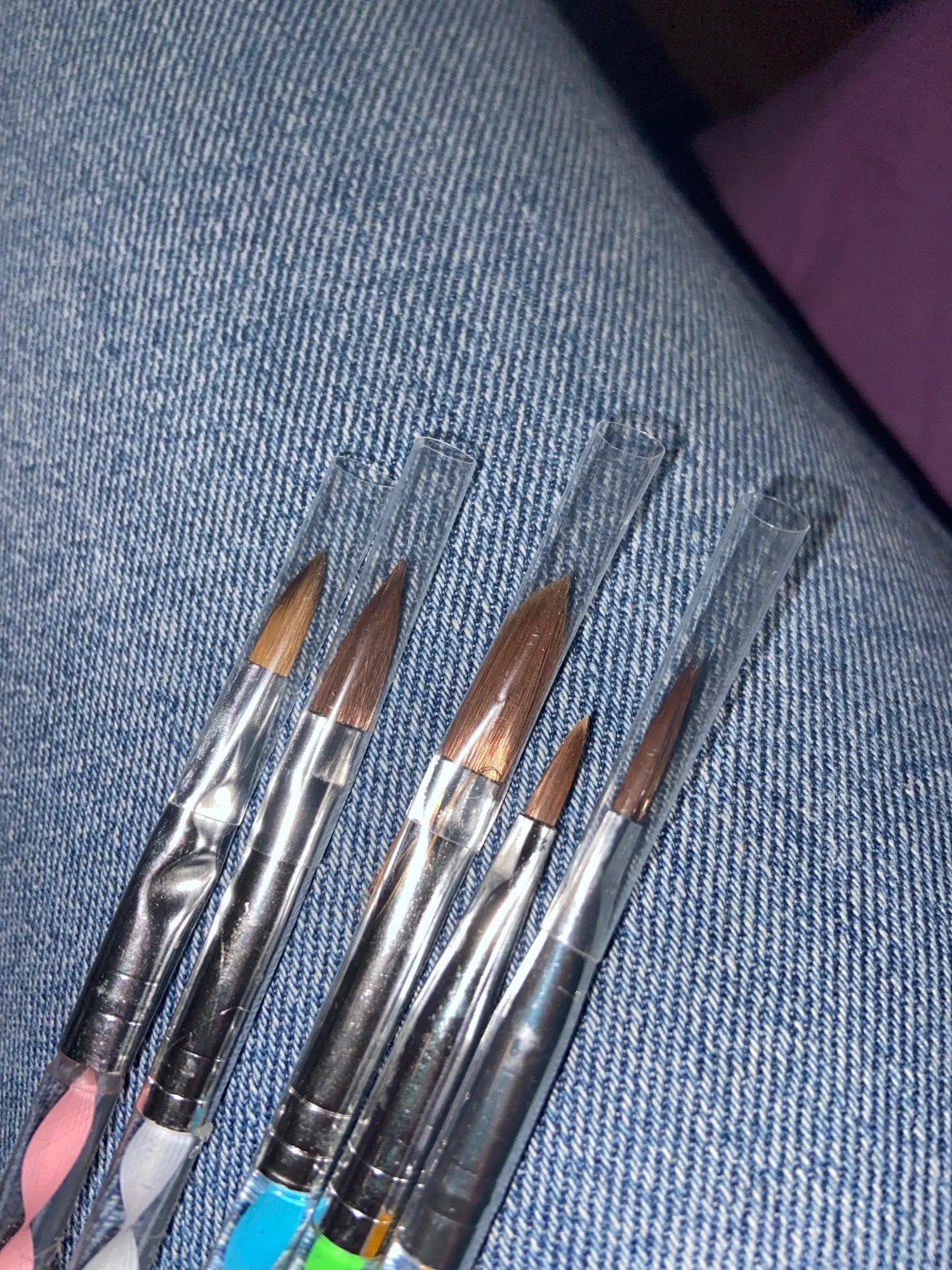Акрил застревал в кисти, что делает его трудно использовать их, но они хороши.